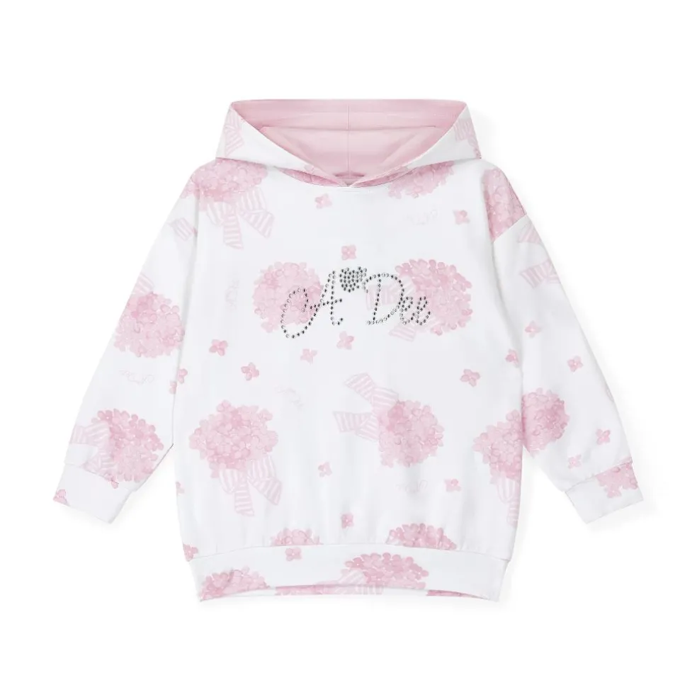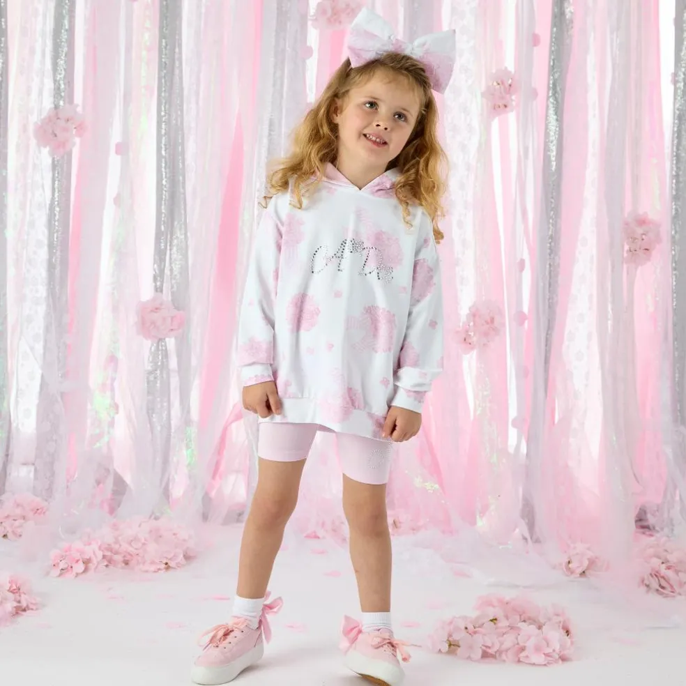 Stay on trend with the Charlotte cycling short set. Featuring a hydrangea print hooded sweatshirt and pink cycling shorts, both with sparkling diamante logo details.