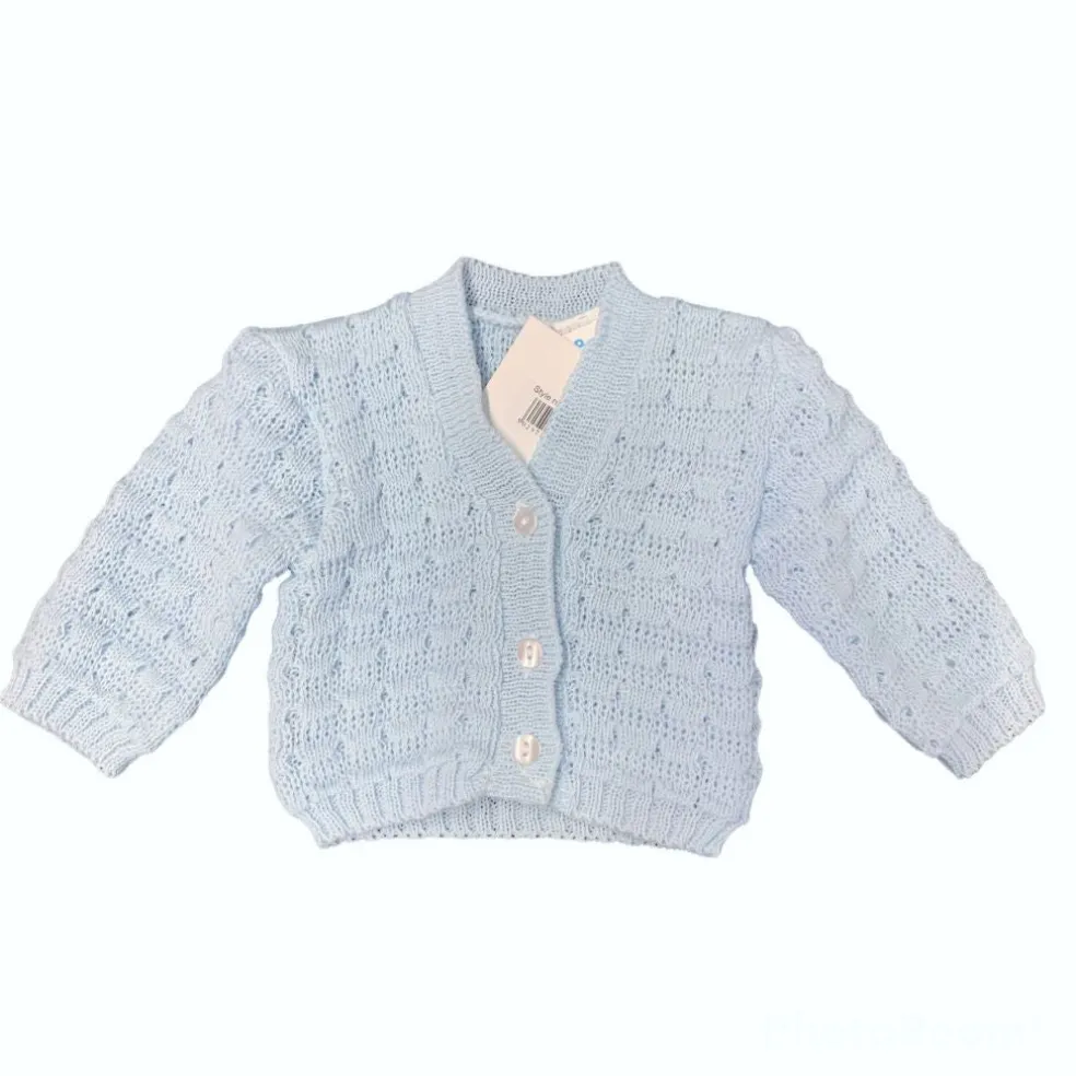 Knitted cardigan with front button fastening.