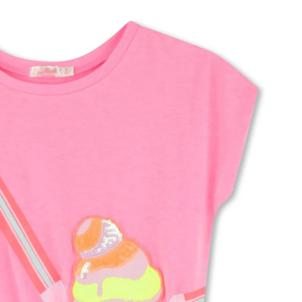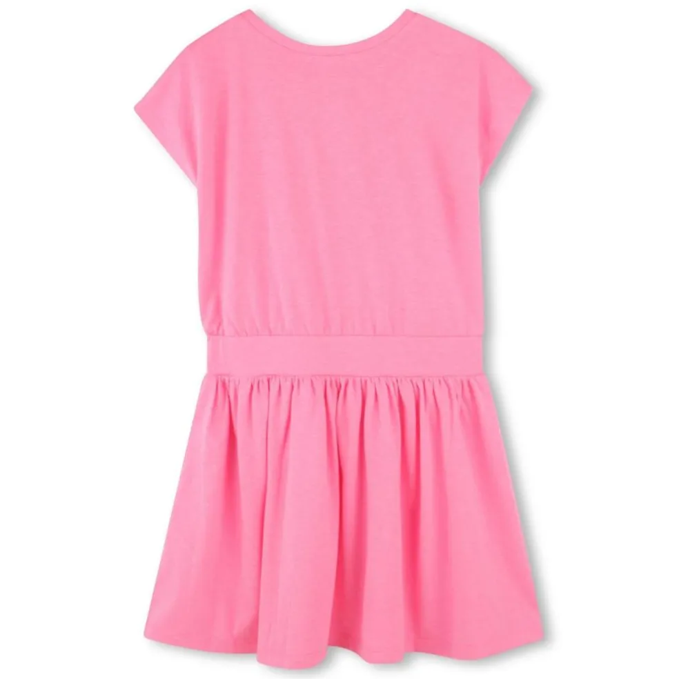 This short-sleeved Billieblush dress is the perfect modern outfit for a day out with the girls. It features a distinctive tricot trompe-l’oeil bag, embellished with sequins, printed on the front. The dress is made of a cotton blend.