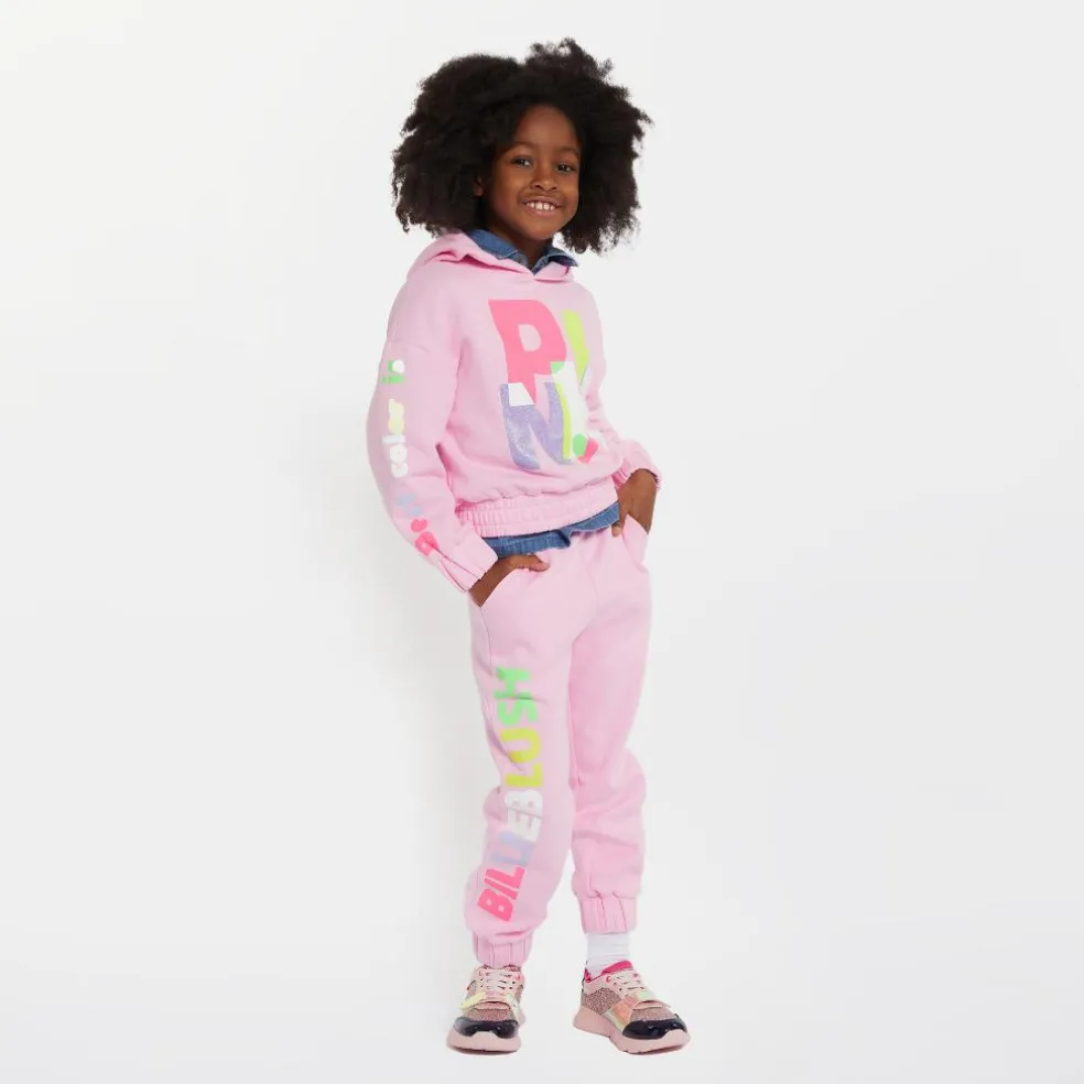 These Billieblush brushed-fleece jogging bottoms are made of 100% cotton. They come in a colour-gradient design with a multicoloured Billieblush logo flocked on the front of the leg. This practical garment has two side pockets and an elasticated waist.