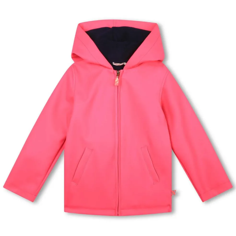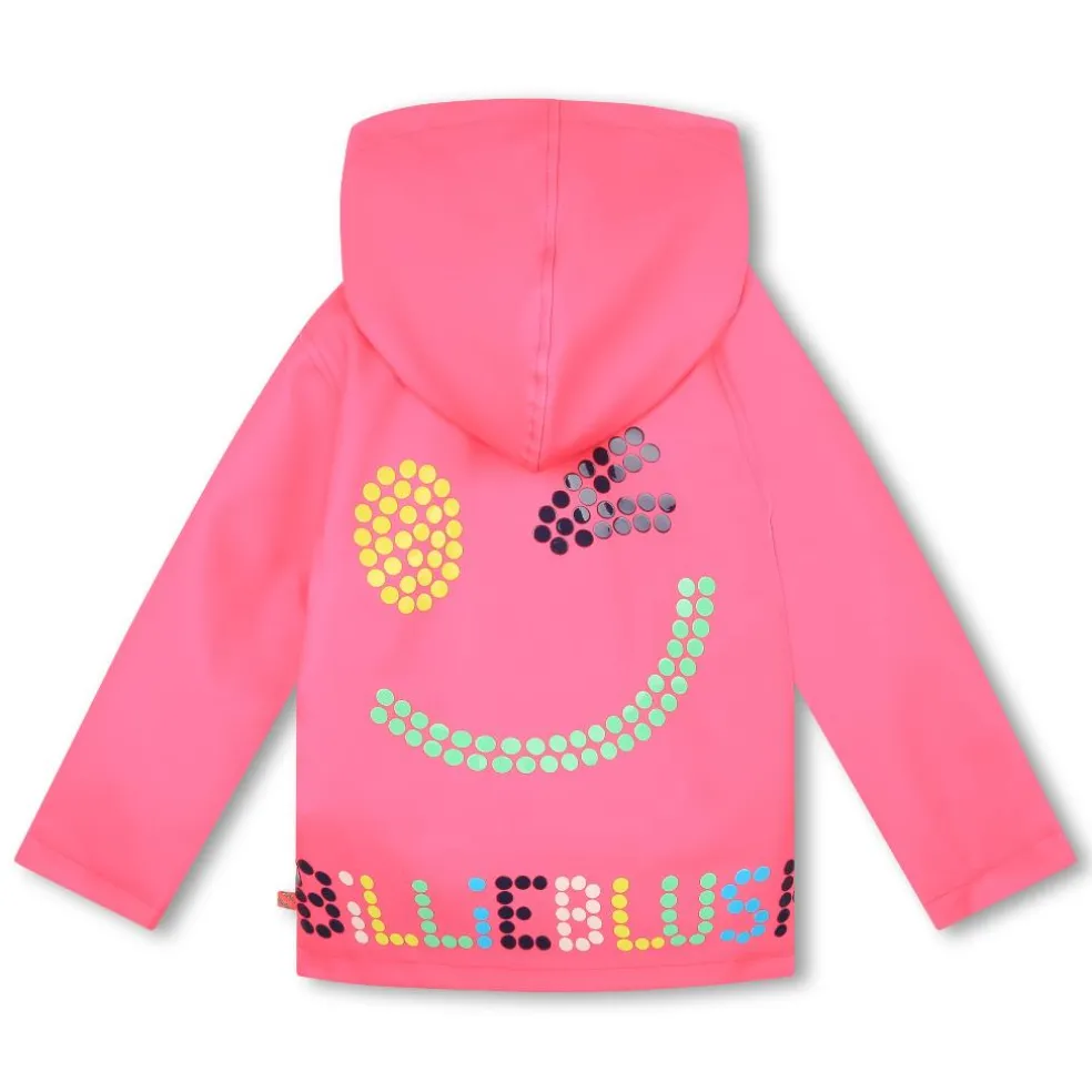 Hooded raincoat, mat fabric, with a polar lining. 2 pockets, zip closure on the front, and fancy Billieblush illustration on the back.