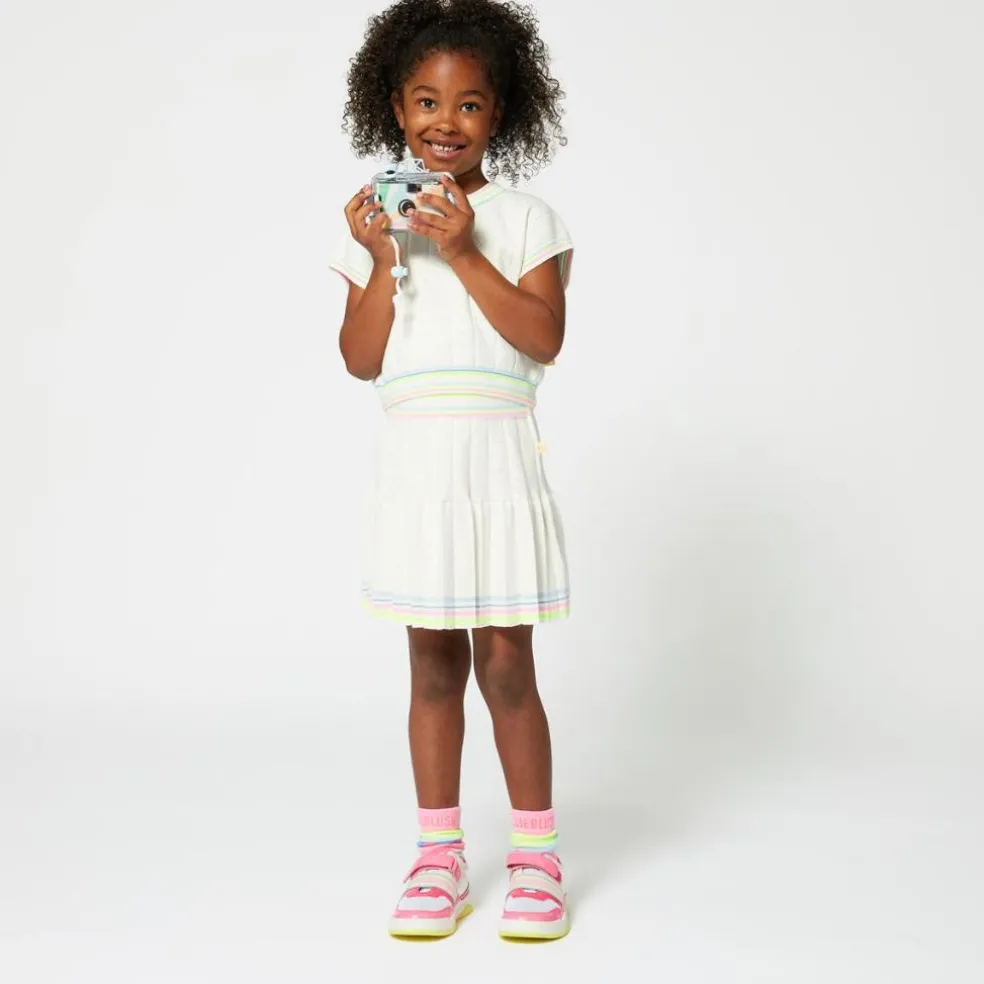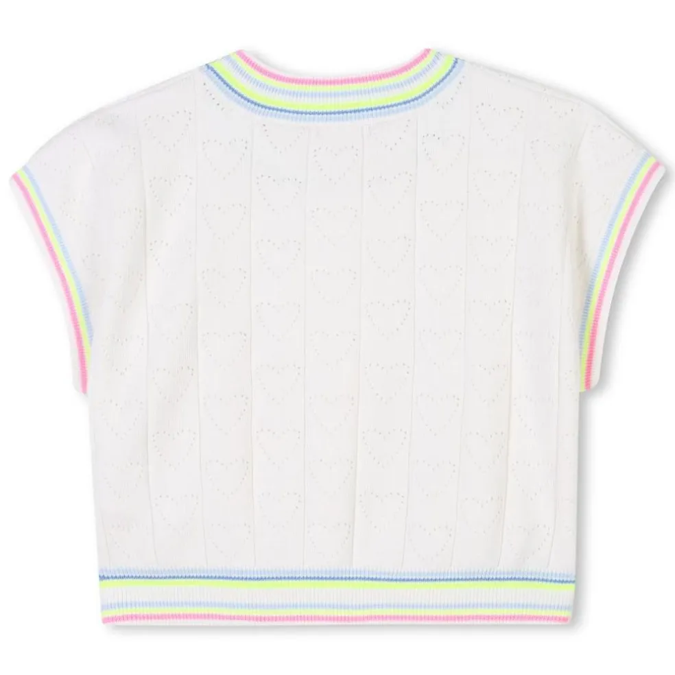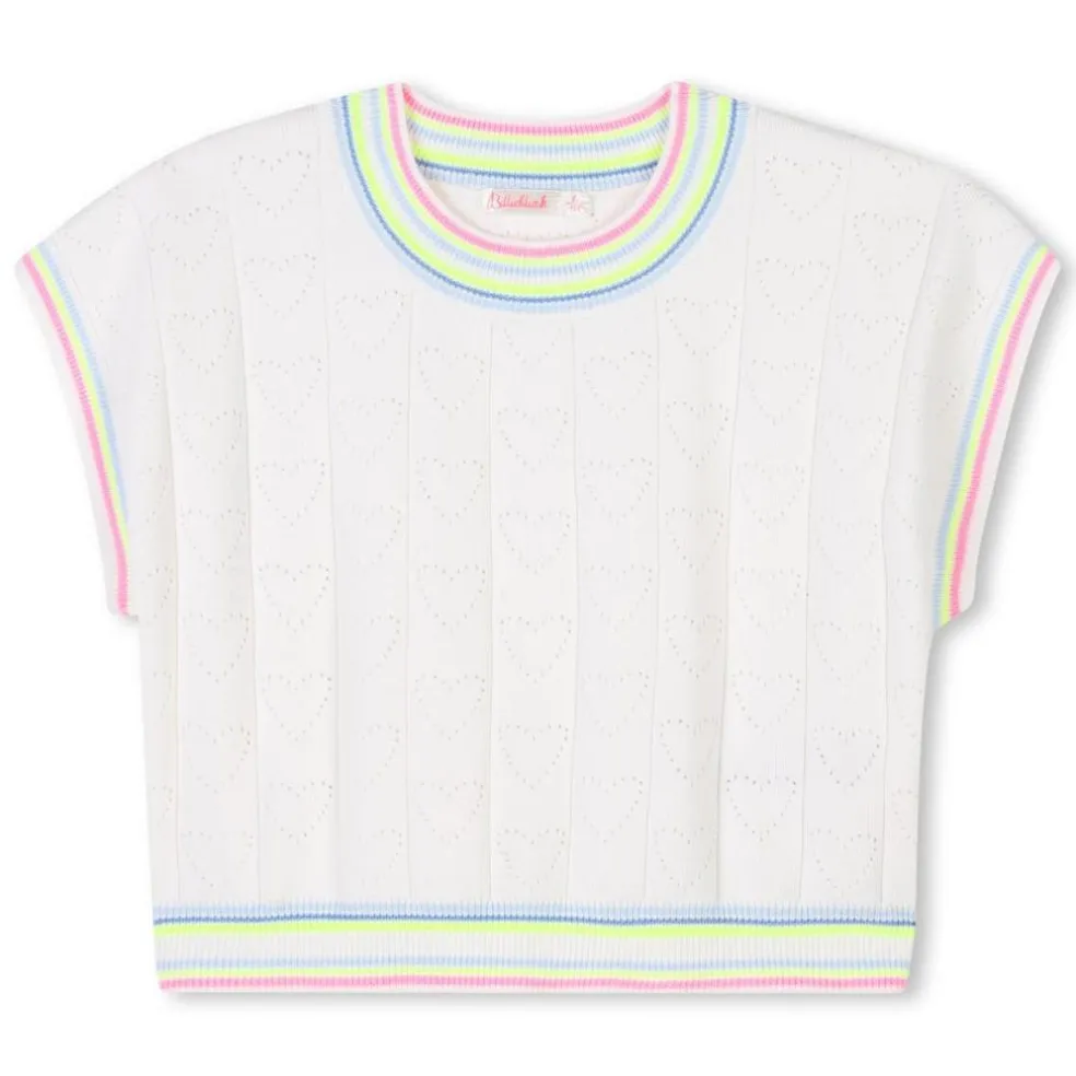 Girls will love the little openwork hearts on this Billieblush short-sleeved jumper. It is a lightweight cotton knit and features striped ribbing on the neck, sleeves and hem.