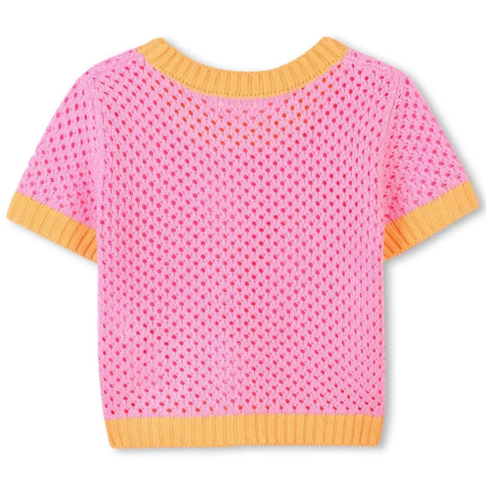 This Billieblush top is a must-have for putting together modern outfits that are comfortable to wear every day. This design features contrasting ribbing on the neck, cuffs and hem. The crocheted garment shows off a novelty patch on the front hem.