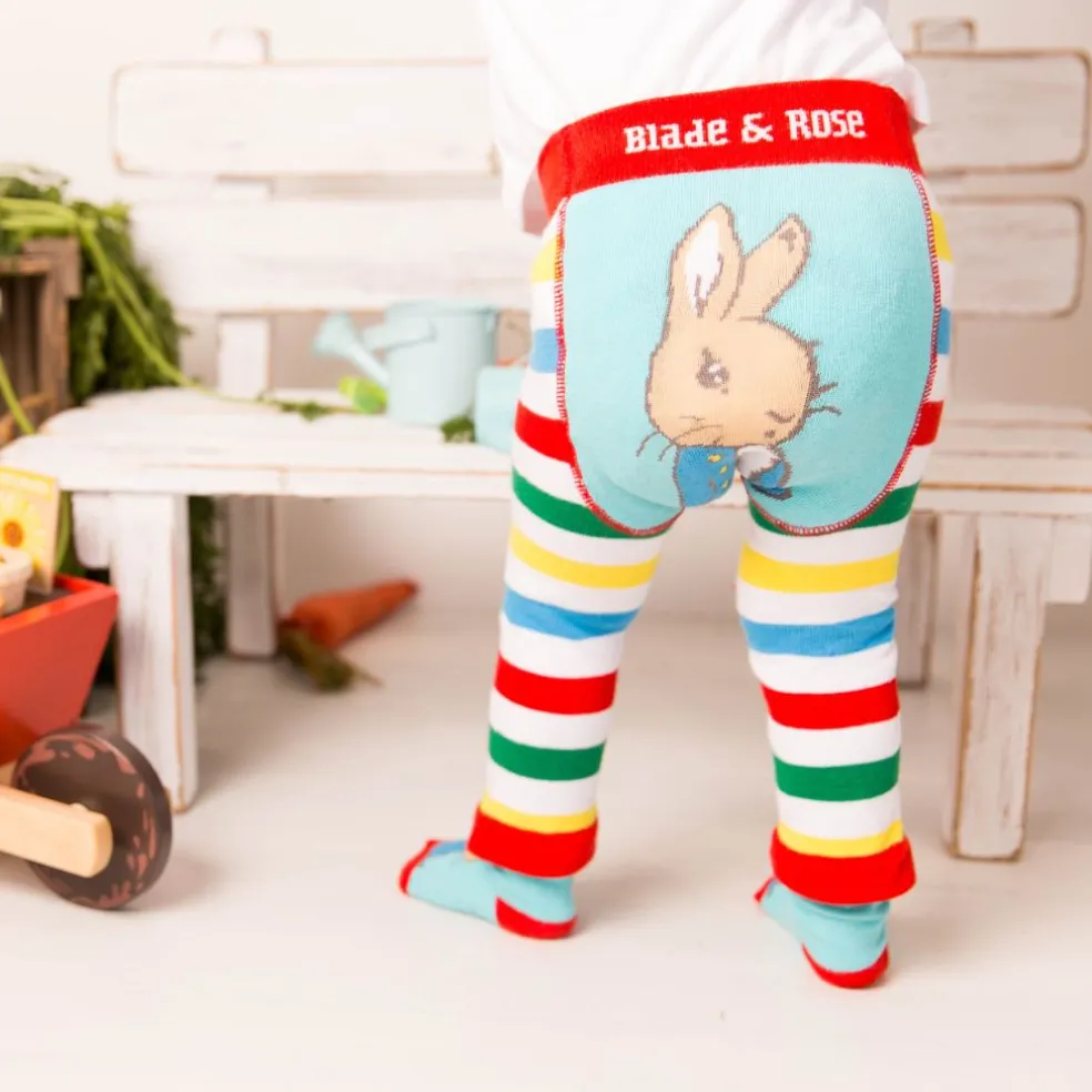 Bold and eye-catching, wide striped rainbow leggings with a cheerful Peter on the bum. These stretchy leggings were designed with little explorers in mind.
