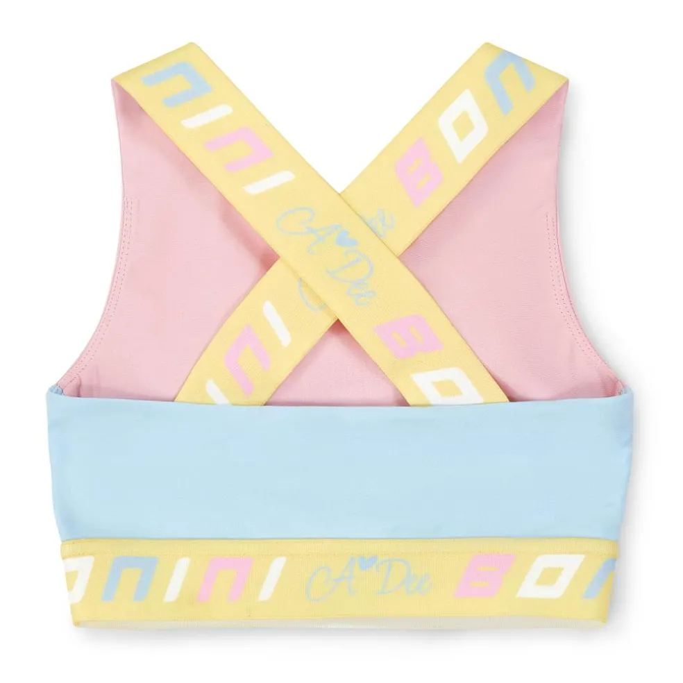Colourblock sports crop top with logo tape cross back straps