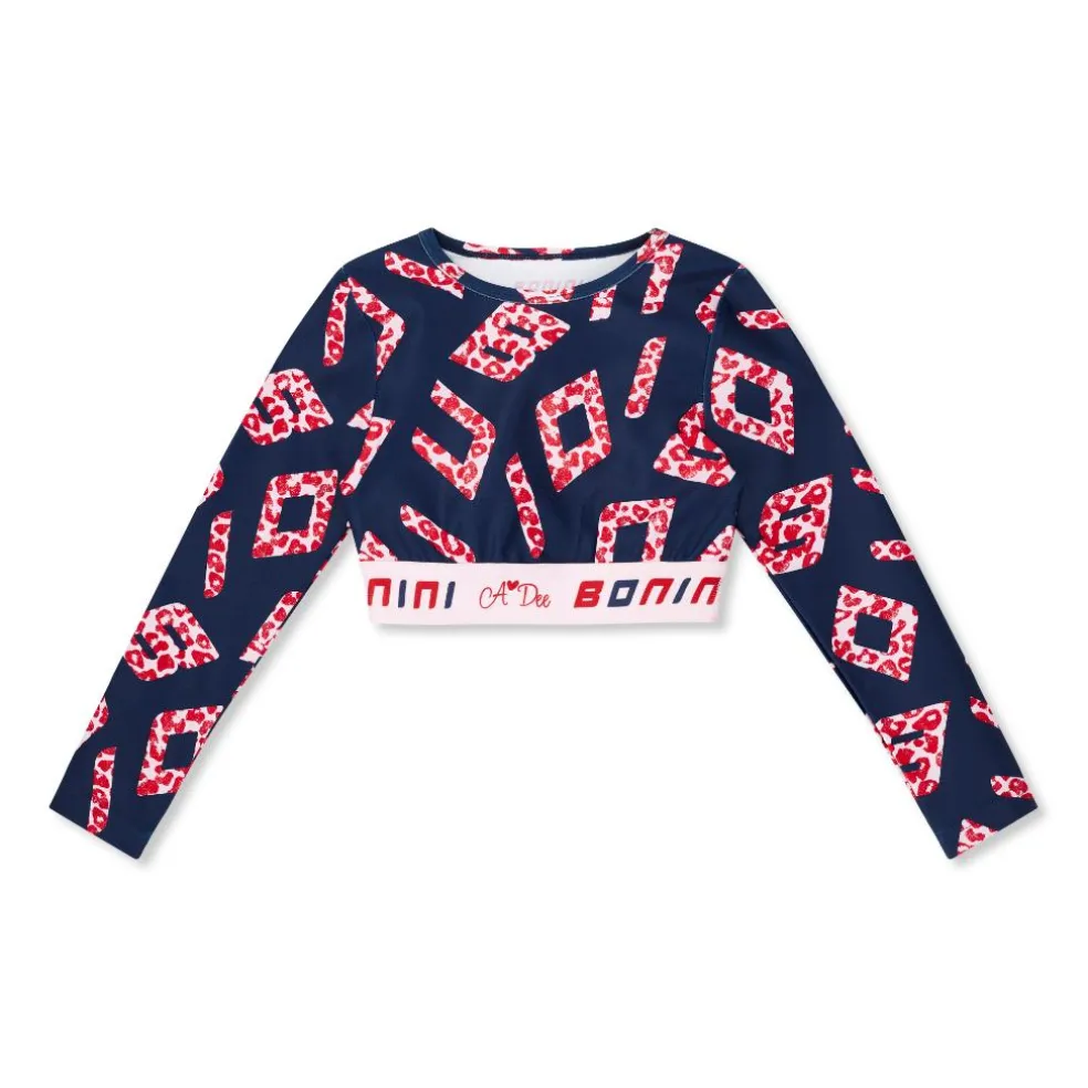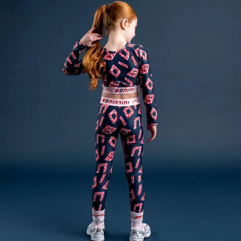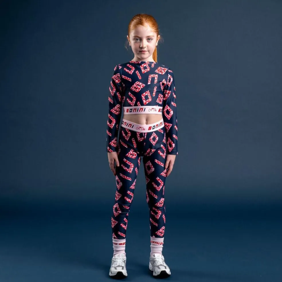 The navy Power crop top is part of the collaboration collection with A*Dee, featuring a signature all-over logo print. They are made from a blend of polyester and elastane for ultimate stretch and comfort, it is finished with a branded elasticated waistband.