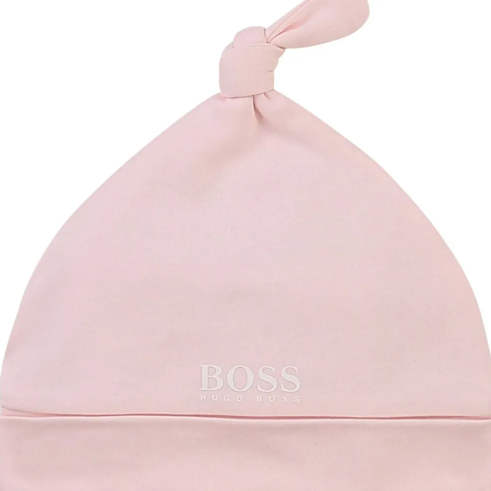 Cotton interlock pull on hat with cotton jersey lining and printed BOSS logo on the front.