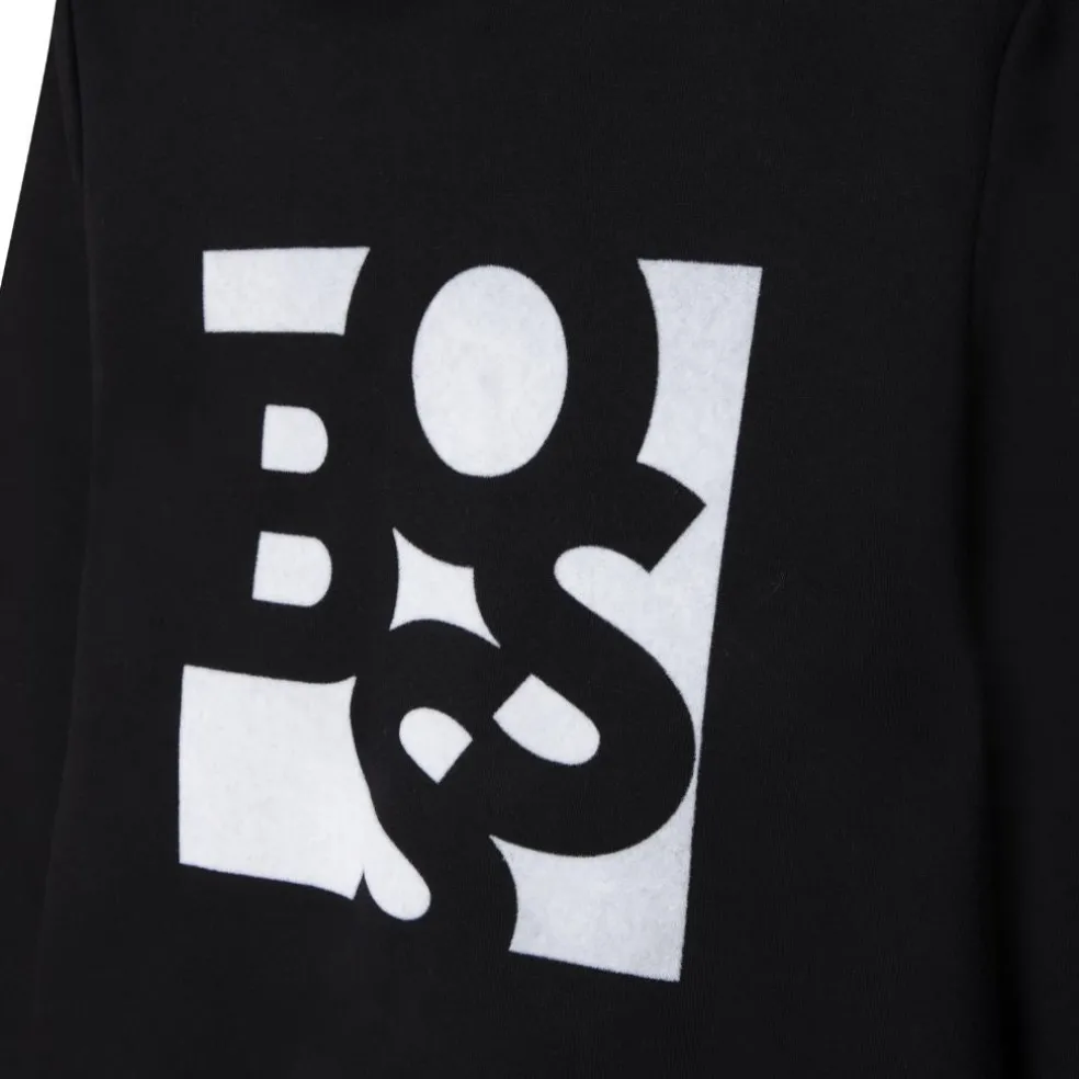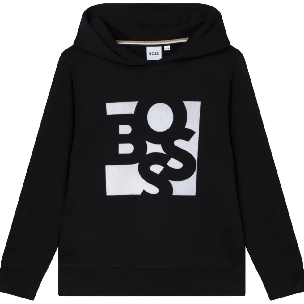 Cotton / polyester fleece hooded sweat-shirt, with “BOSS” print on the front.