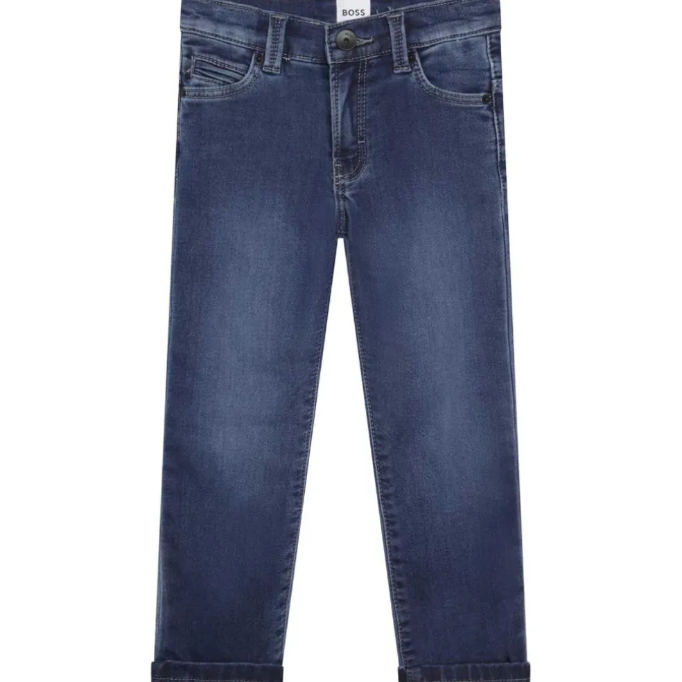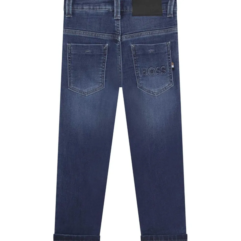 Cotton / polyester / elastane denim 5 pocket trousers, with adjustable waist (up to 10 years,) “BOSS” embossing on the back pocket, branded label on back.