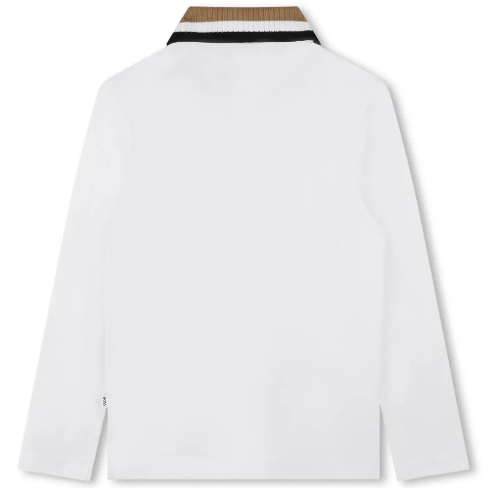 Long sleeved polo shirt in cotton-elastane piqué, with printed BOSS logo on chest, and striped collar in iconic colours.