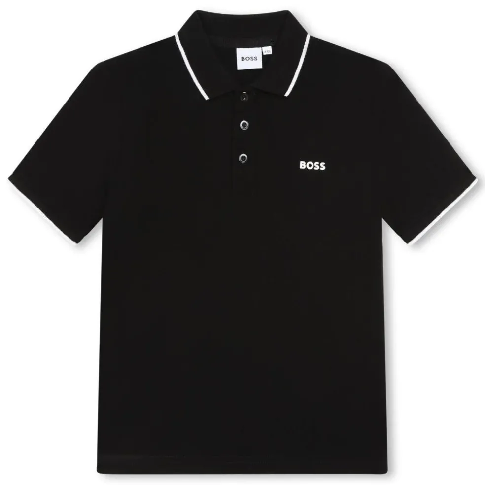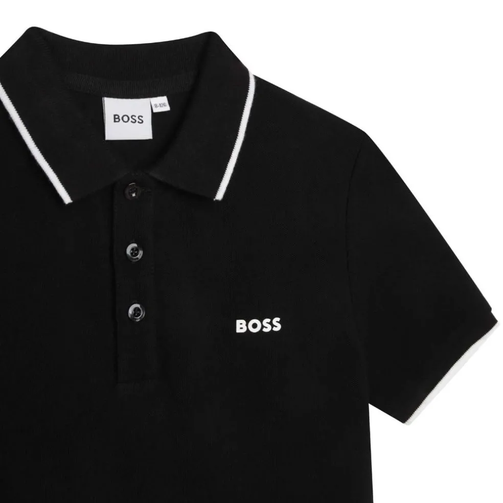 Cotton pique short sleeved polo shirt with printed ‘BOSS’ logo on the chest.