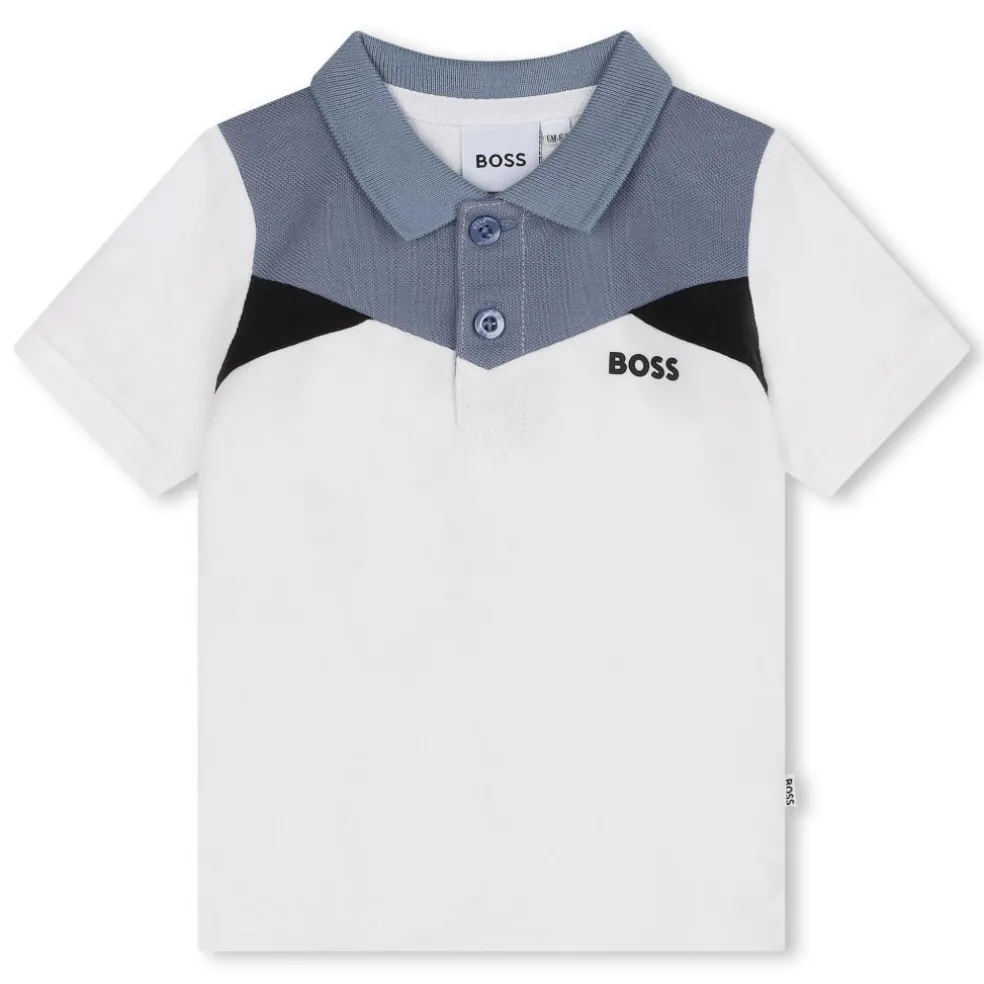 This short-sleeved polo shirt from BOSS creates a comfortable and modern everyday outfit. The cutouts and colour blocks at the shoulders give it an original look. This design is made primarily of cotton piqué material.