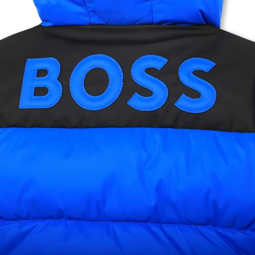 Long-sleeved hooded jacket in 100% polyamide, with 2 side pockets. Contrasting yoke on the shoulders and back, “BOSS” logo on the upper back, logo badge on the sleeve.