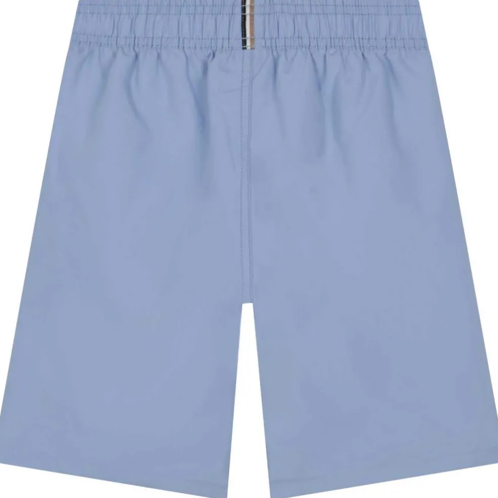 100% polyester peach finished swim shorts with side pockets, elasticated waist, and drawstring. ‘BOSS’ logo print on the leg.