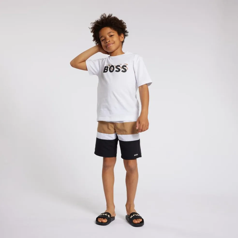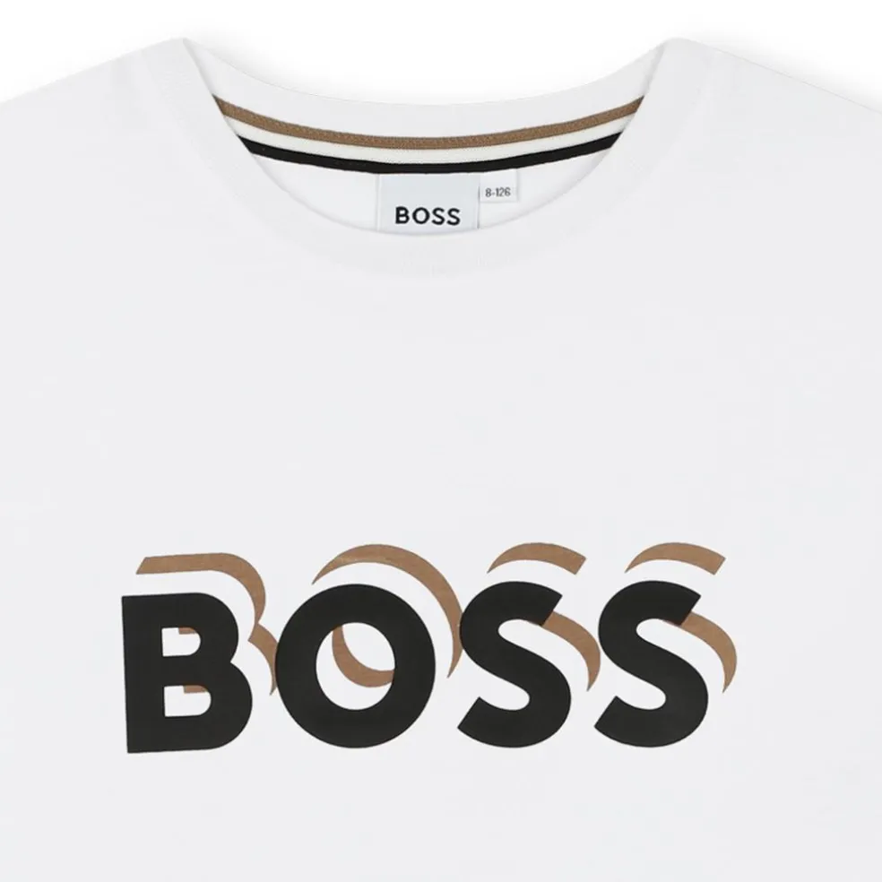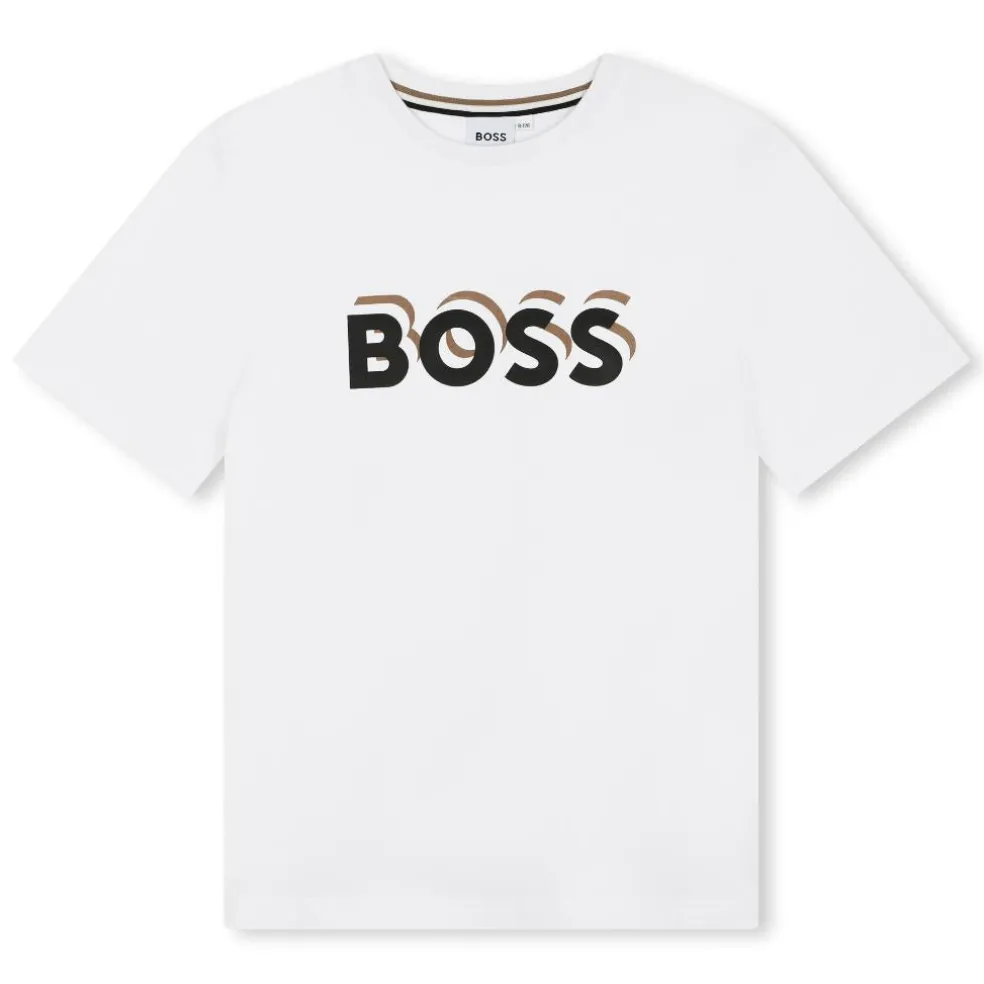 Cotton jersey short sleeved regular fit t shirt with embossed BOSS logo on the front.