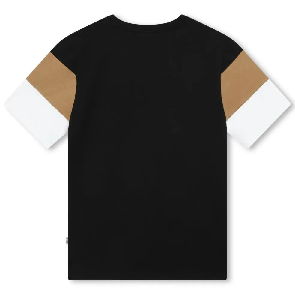 This BOSS short-sleeved T-shirt is an essential for your summer wardrobe. Made from 100% cotton, it features a straight cut, two stripes on the front and a printed BOSS badge on the chest.