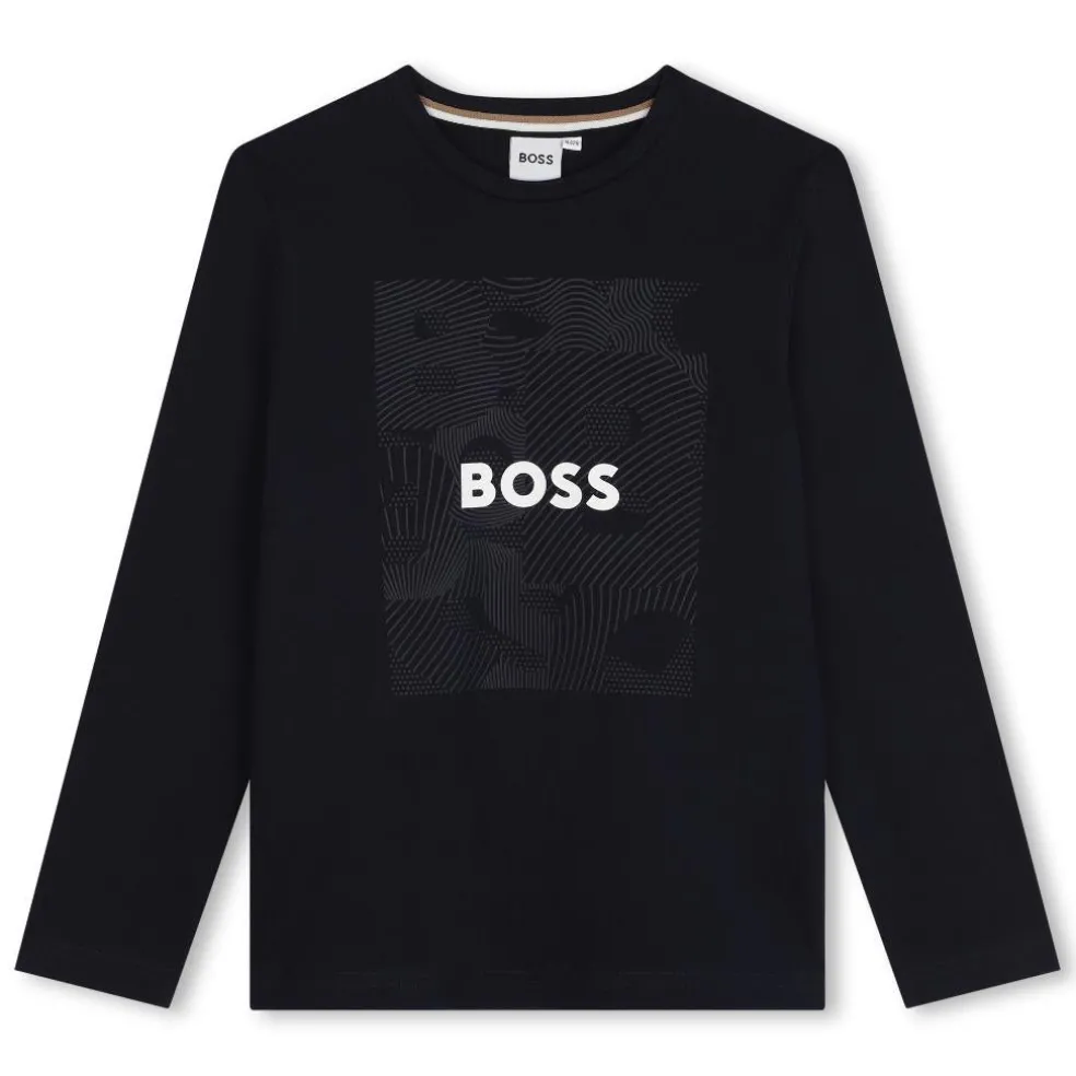 This BOSS long-sleeved T-shirt is an elegant and timeless style, whether worn with jeans or with a suit. It is made of 100% cotton with a fitted cut and features a novelty illustration printed on the front.
