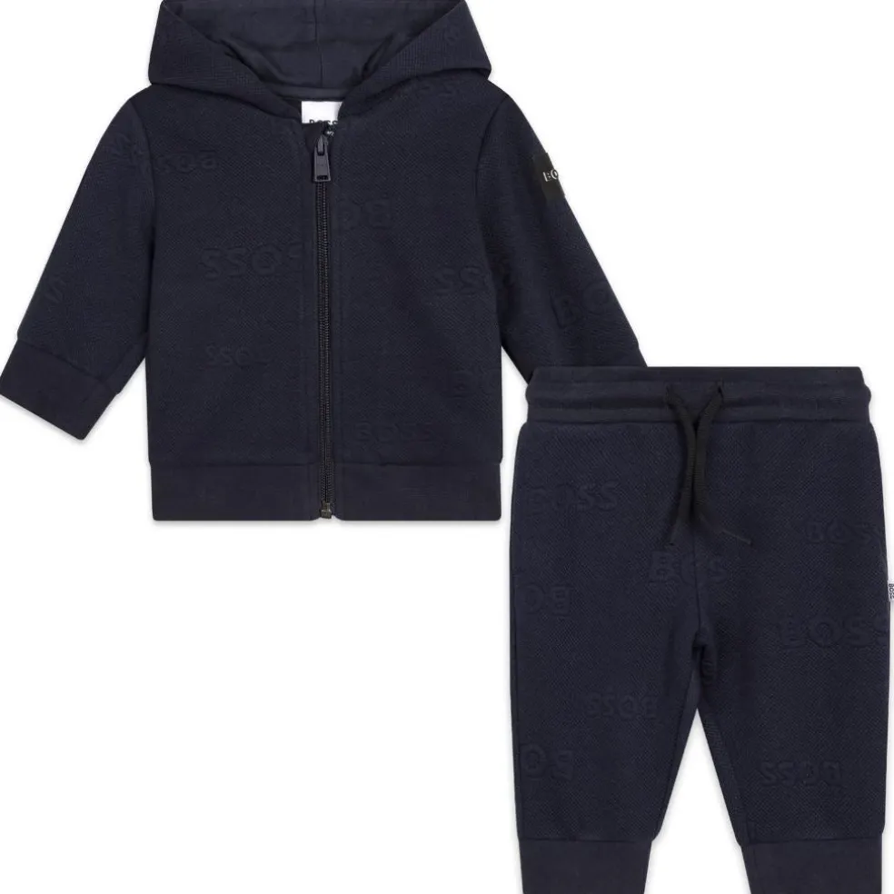 Knitted stitch track suit with BOSS printed jacquard pattern.