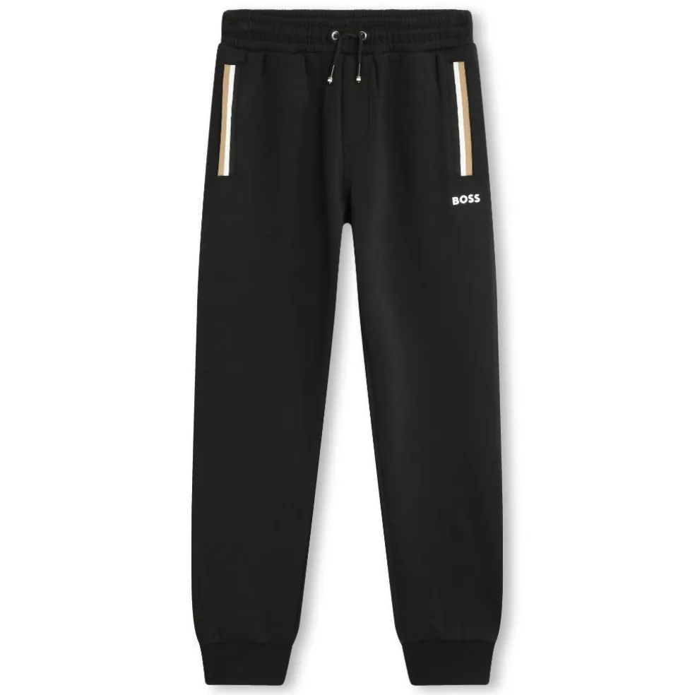 Jogging pants have an elasticated drawstring waistband with BOSS printed logo on one side and iconic coloured ribbing on the front pockets.
