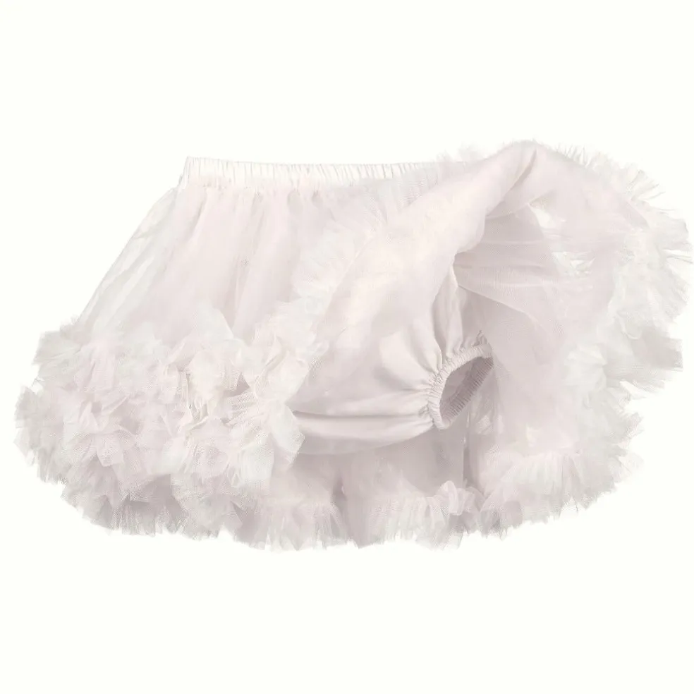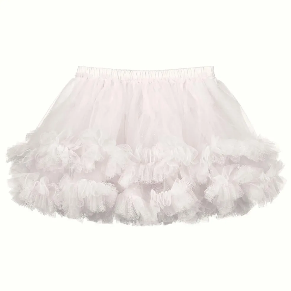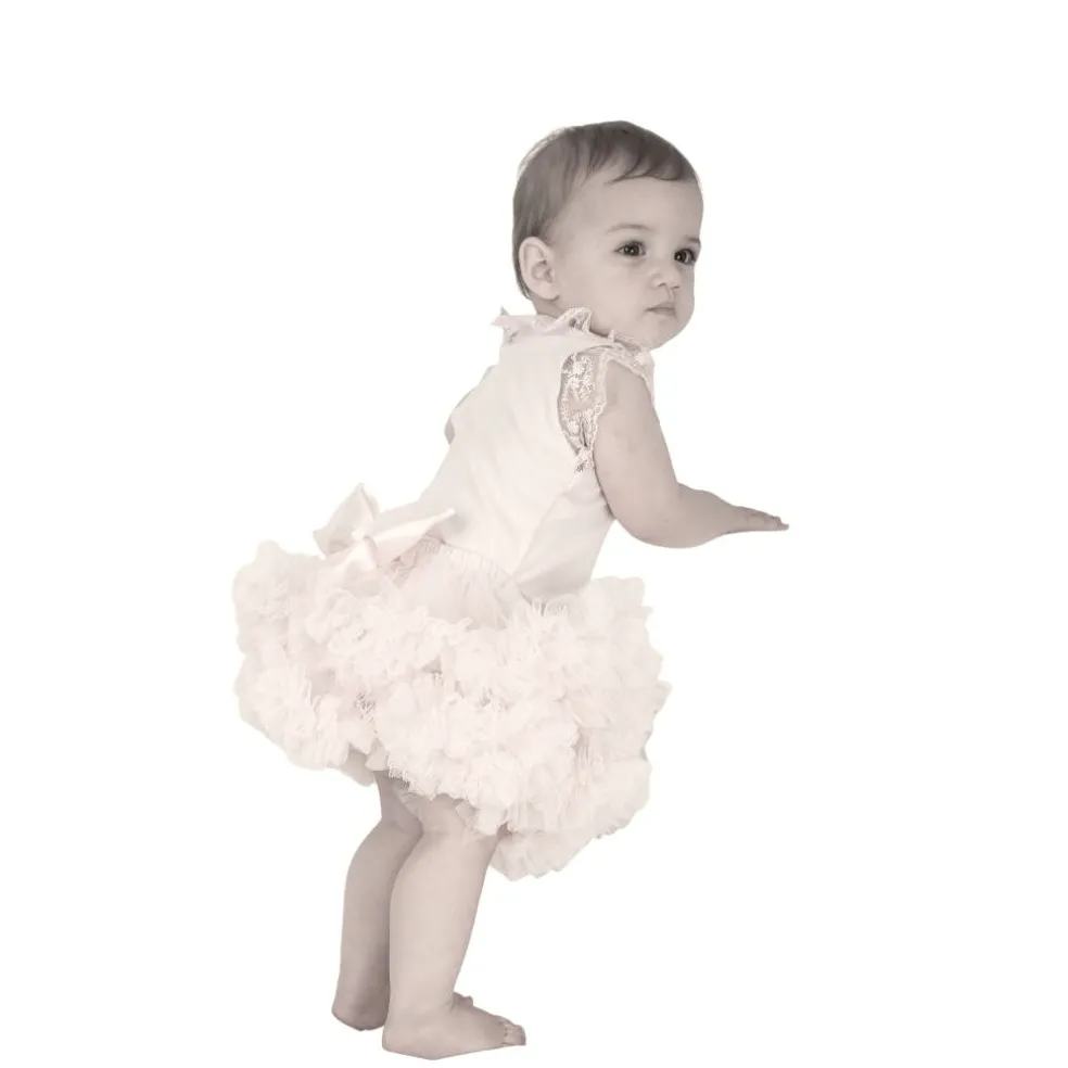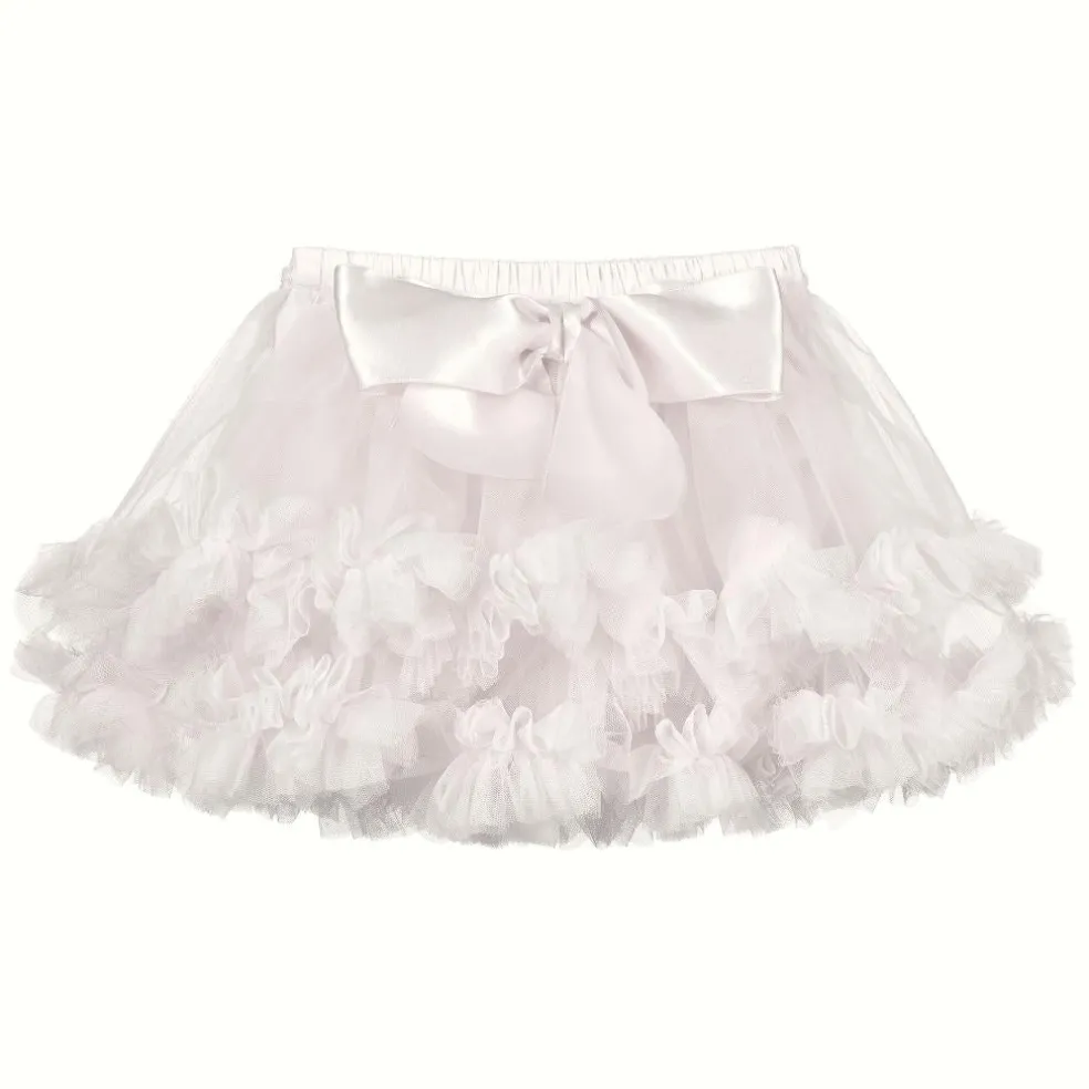 Baby girls tutu skirt with layers of tulle and attached knickers, finished with a satin bow at the back.