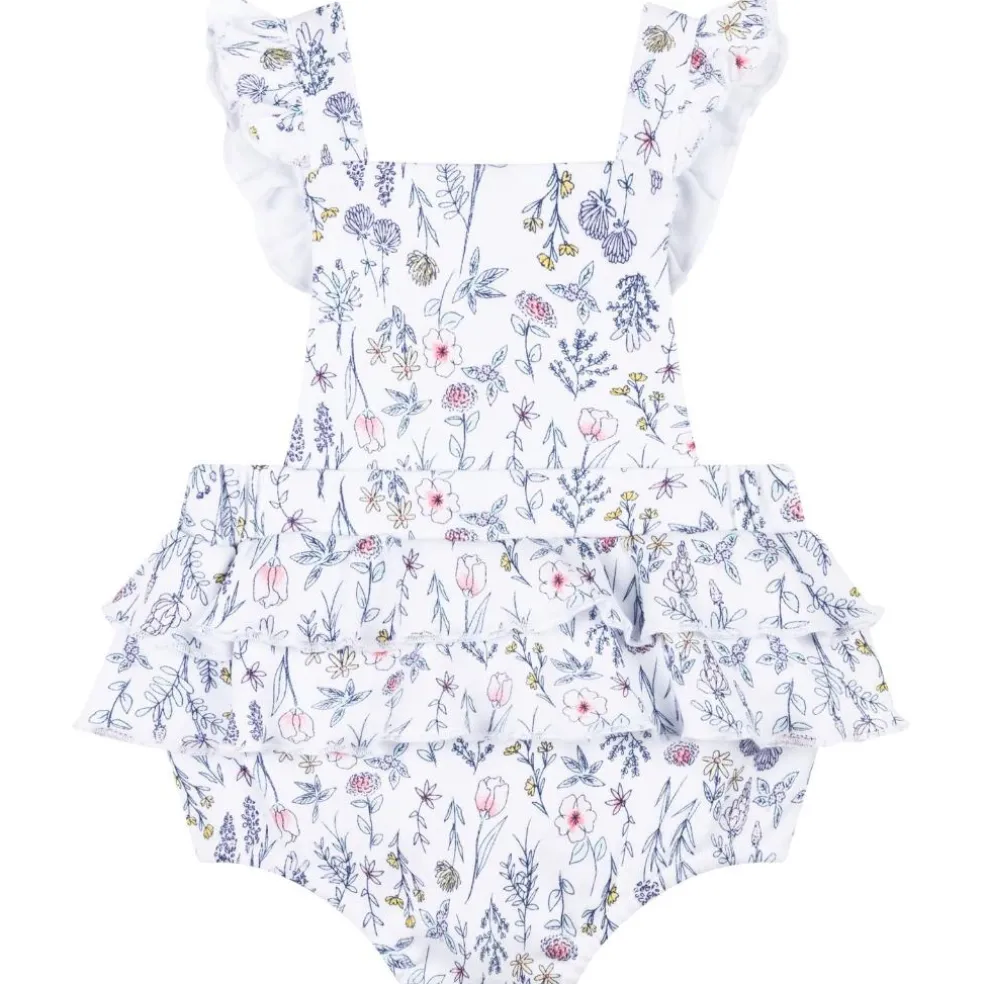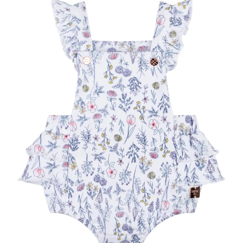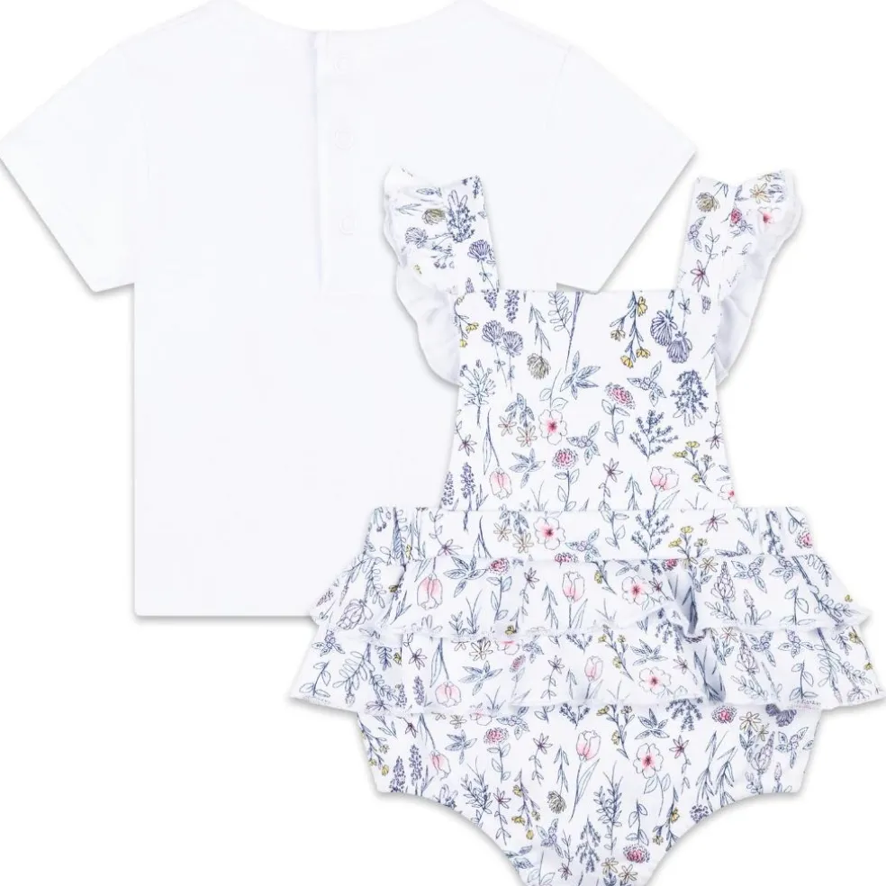 This Carrément Beau set is made of 100% organic cotton and consists of a plain short-sleeved T-shirt and dungarees with a pattern of herbs and flowers. It has ruffled straps with press studs, an elasticated waistband and a press stud fastening at the crotch.
