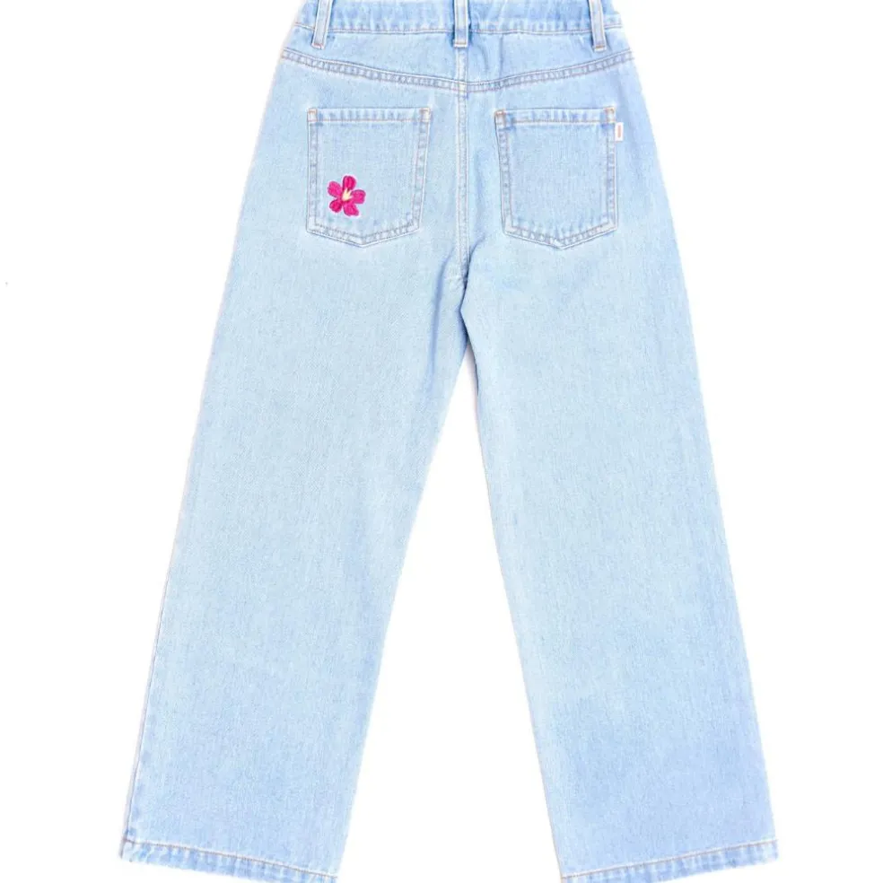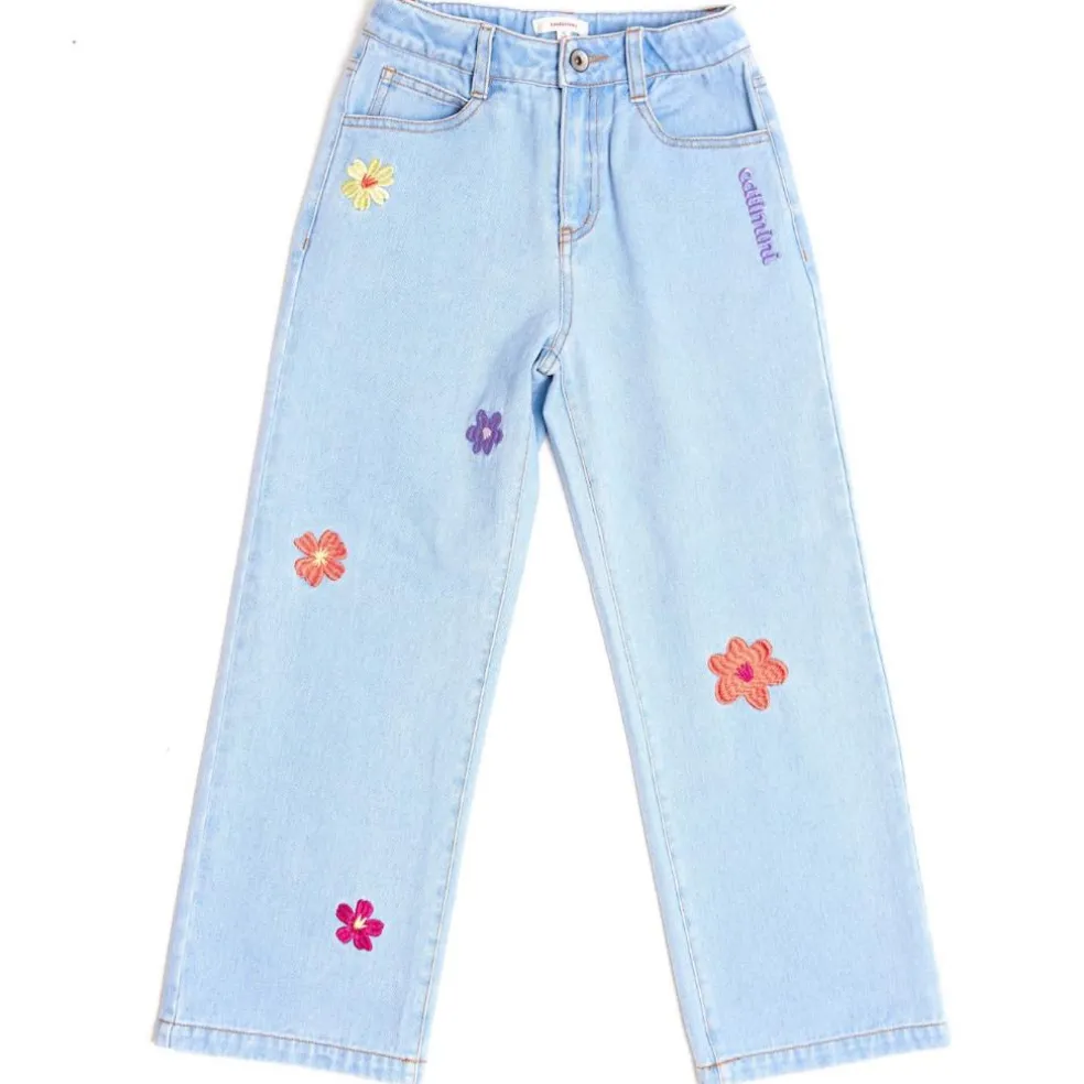 Catimini wide leg jeans finished with embroidered flowers.