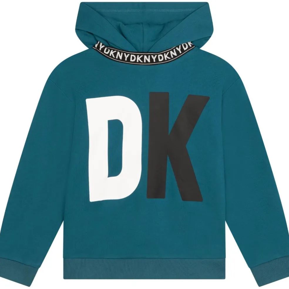 Cotton polyester french terry hooded sweatshirt with printed DKNY logo at the front and back, and DKNY Jacquard elastic at collar.