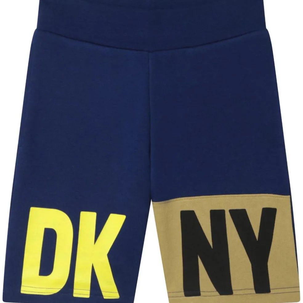 Cotton polyester french terry shorts withelasticated waist. Pockets on sides, and printed DKNY at the front,
