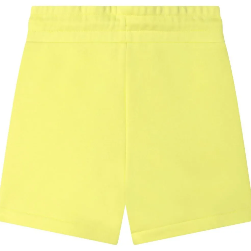 Polyester cotton french terry shorts with elasticated waist and drawstring ties. DKNY branded on the front.