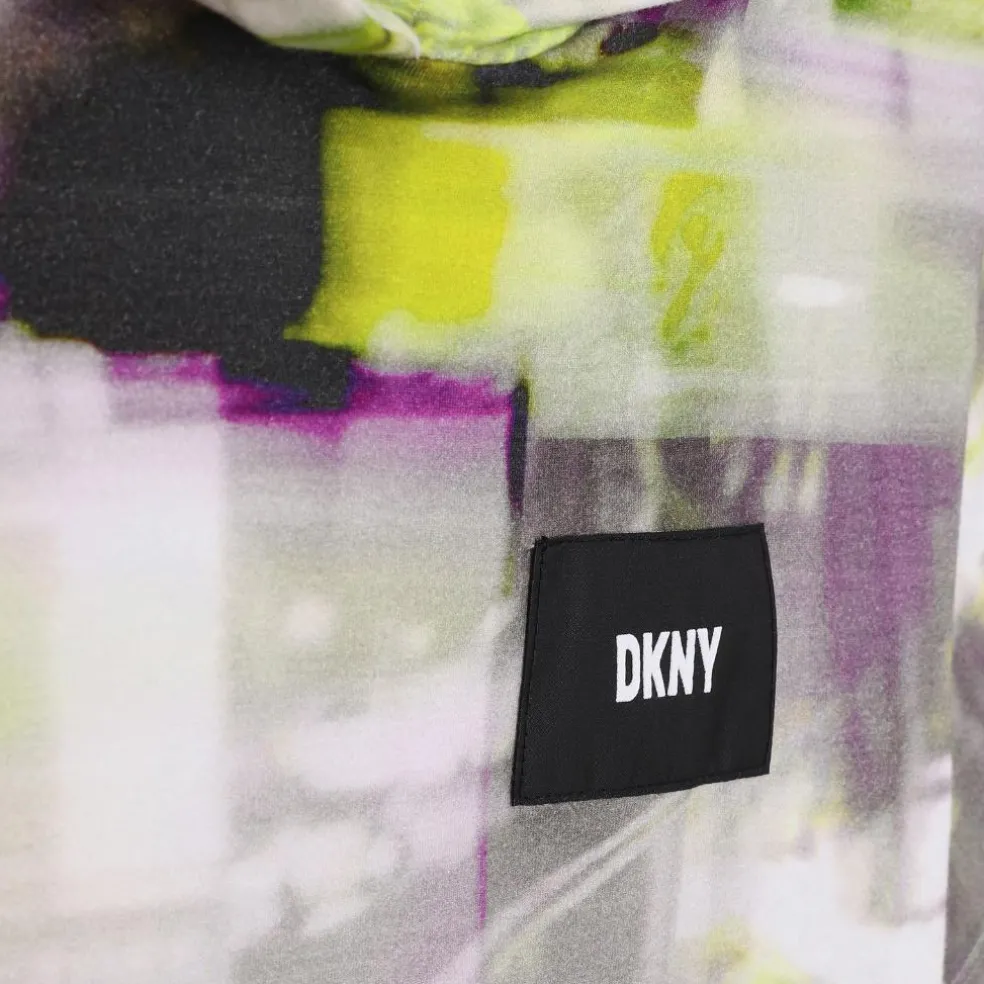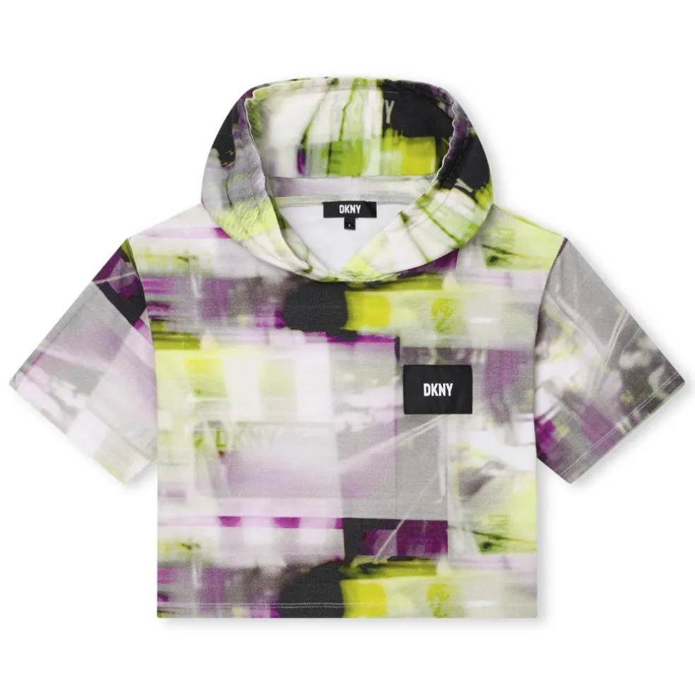 Hooded cotton jersey tee-shirt with “NYC lights” all over print. Woven branded label at chest and DKNY label with rubber effect at hood.