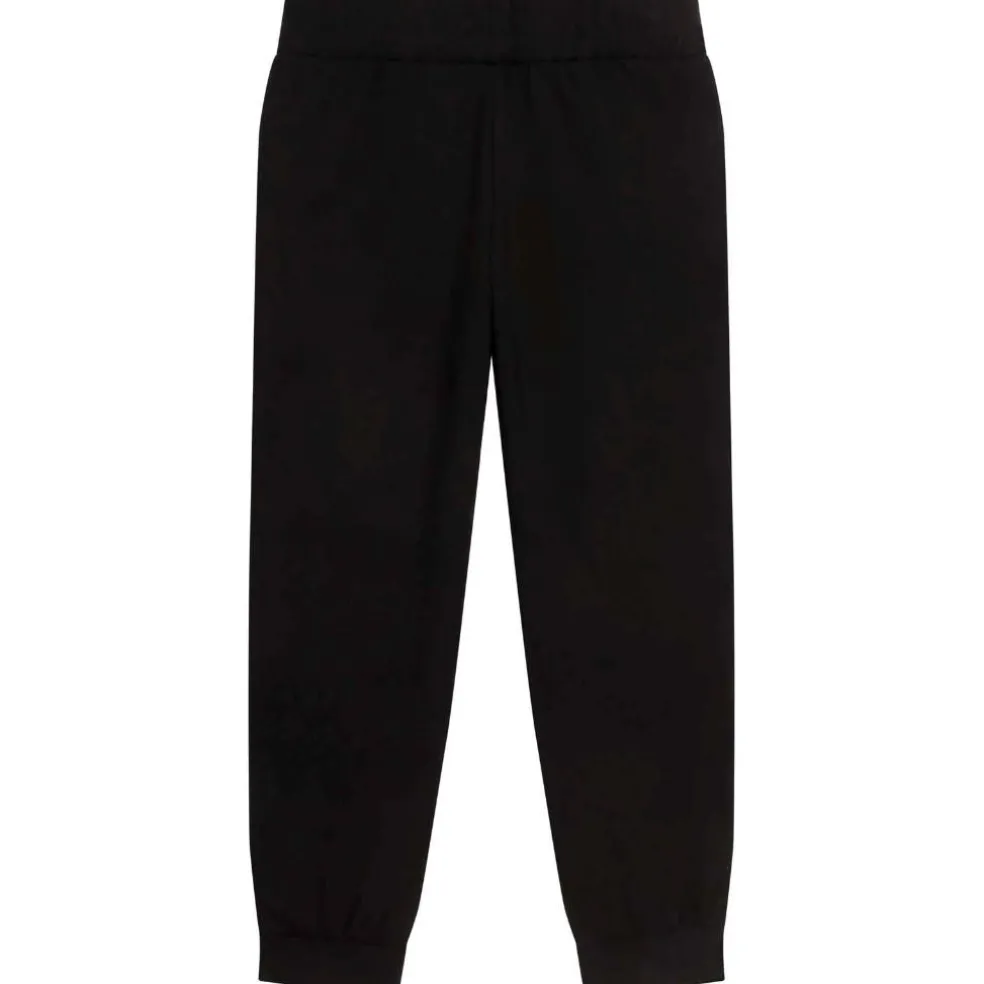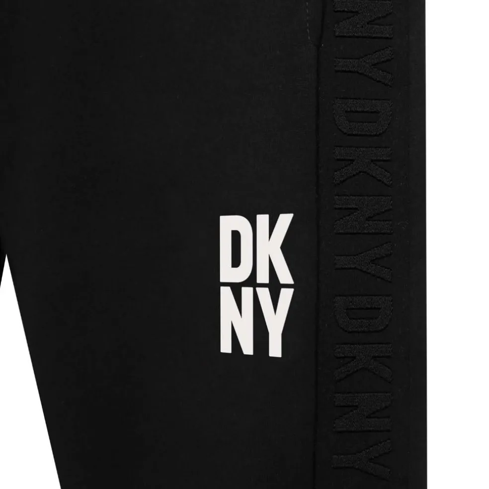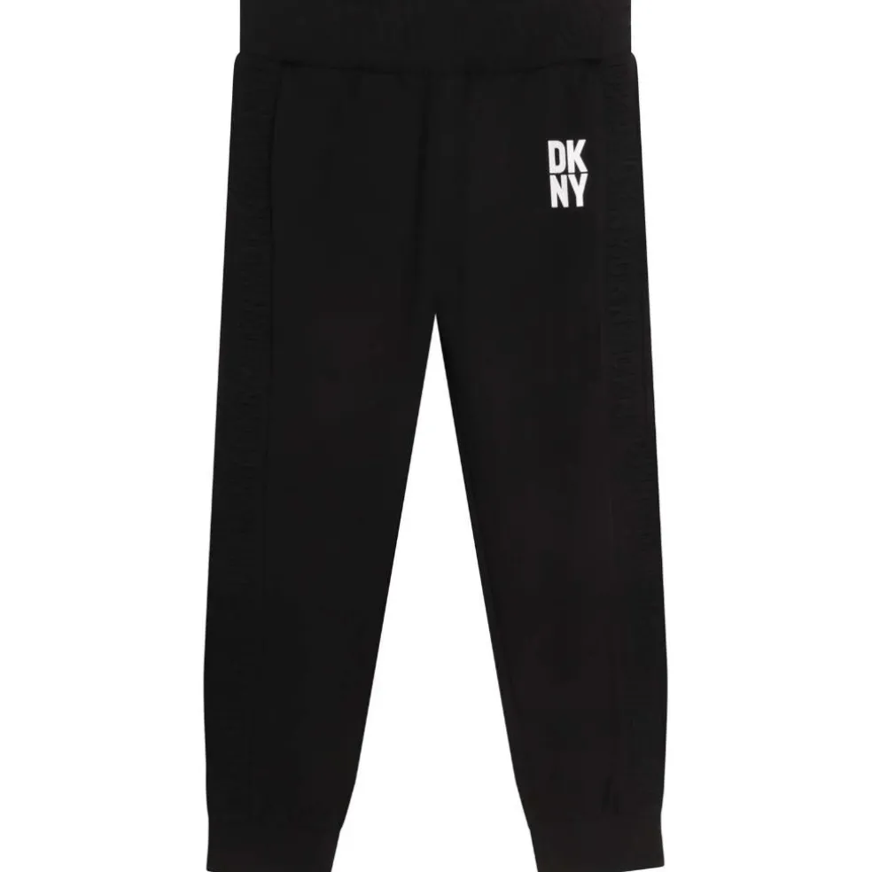 Unisex tracksuit pants with elasticated waist. DKNY branded jacquard strip on each side, DKNY printed on the left leg.