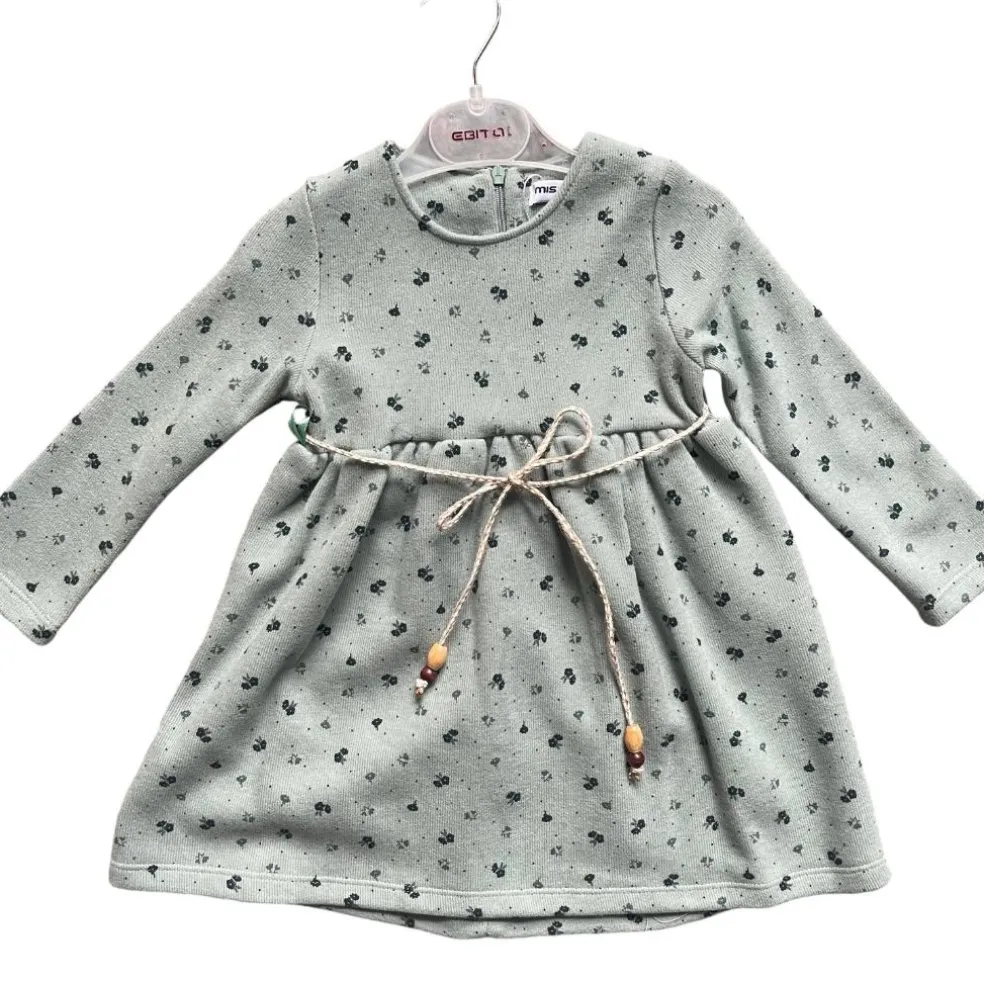 Long sleeved dress with a round neckline in a pretty floral print has a back zip fastening and is finished with a tied cord belt at the waist.