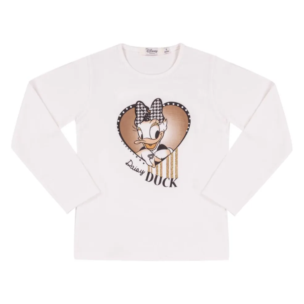 Long sleeved t shirt with a round neckline and the iconic Disney Daisy Duck printed motif on the front which is finished with gold glitter and diamantés.