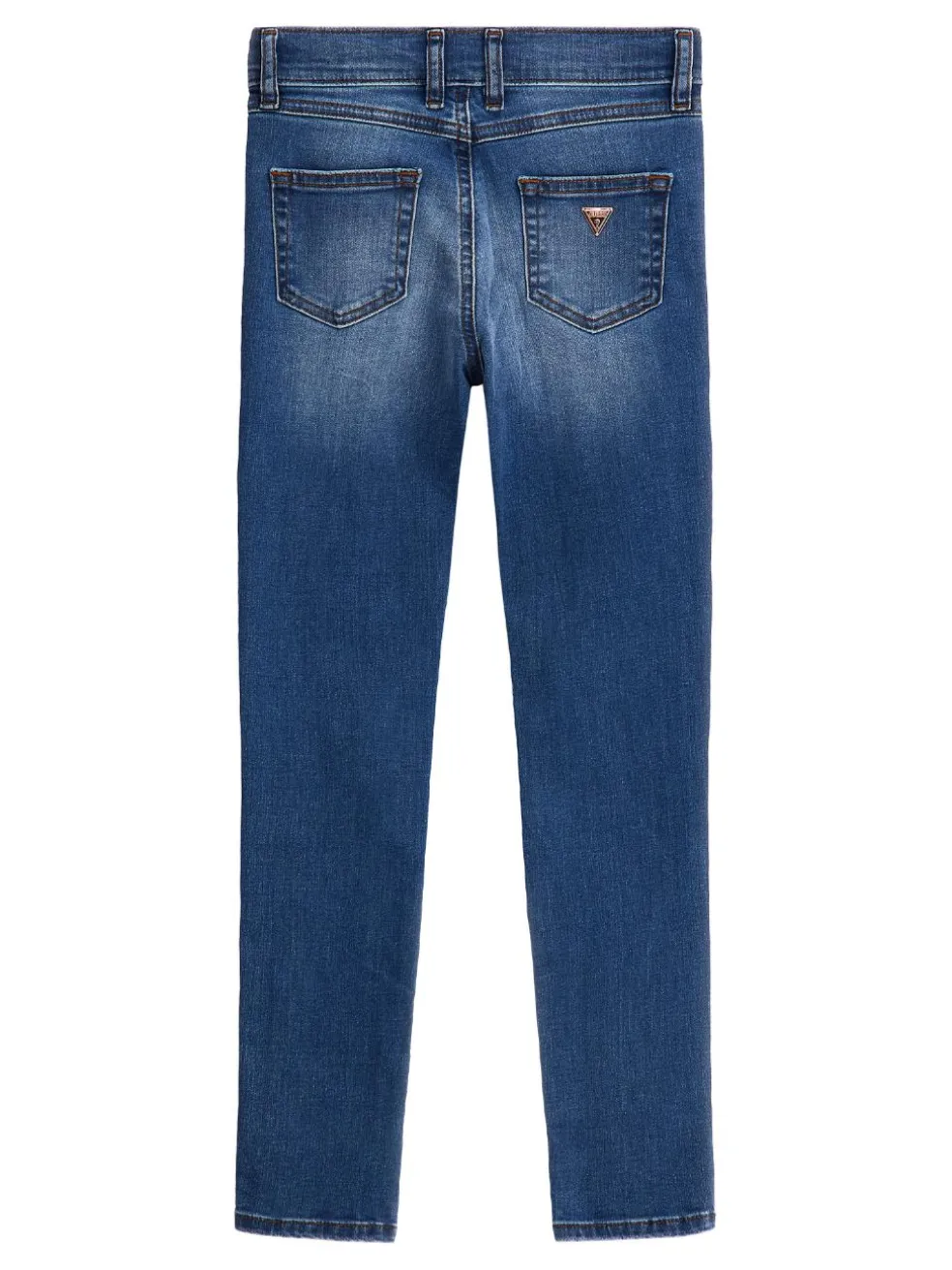 5 pocket skinny fit stretch jeans with a fully adjustable waistband finished with a Guess diamanté logo down one leg.