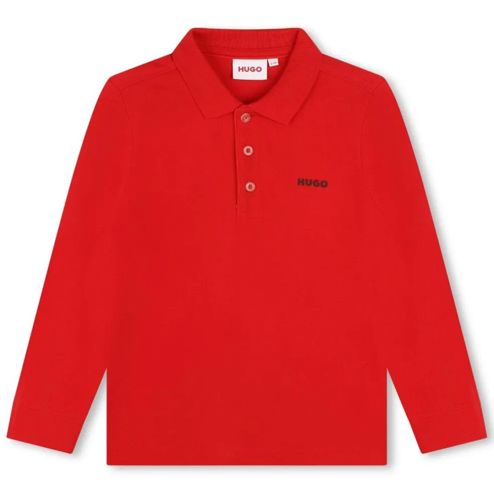 Cotton/elastane lycra piqué long sleeved polo shirt, with ribs at collar and sleeves. HUGO logo printed on the chest.