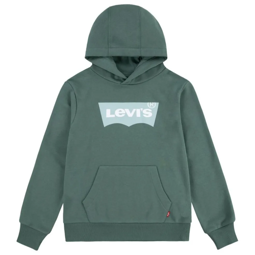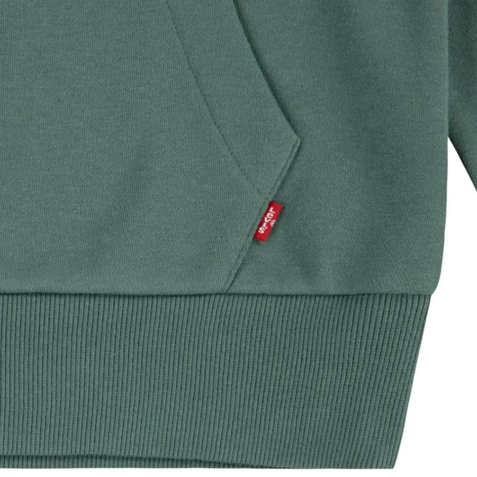 Long sleeved over the head hoodie with a front appliqued pocket and a printed Levi’s batwing motif on the front, with ribbed cuffs and waistband.