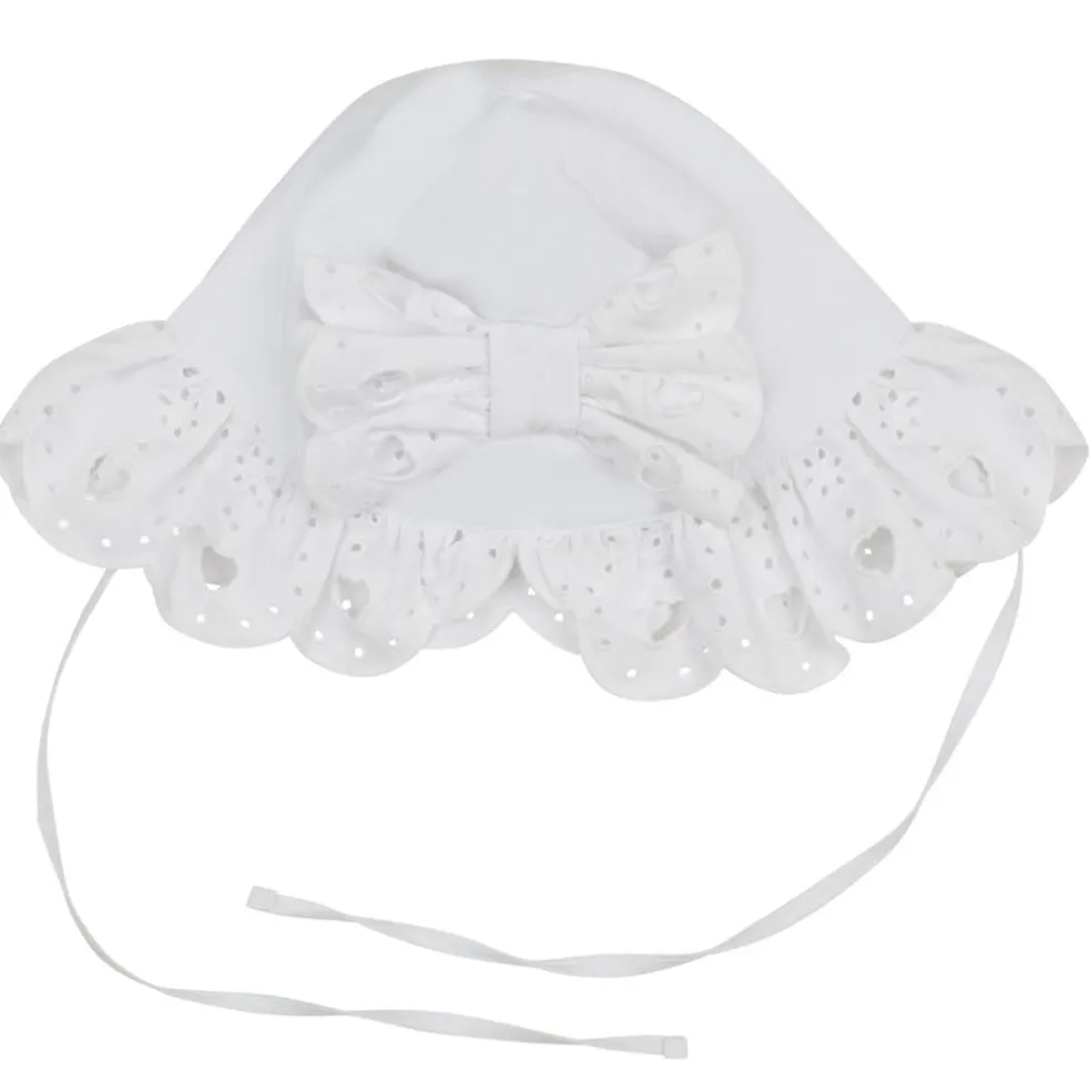 Cotton sunhat finished with a broderie anglaise frill and bow.