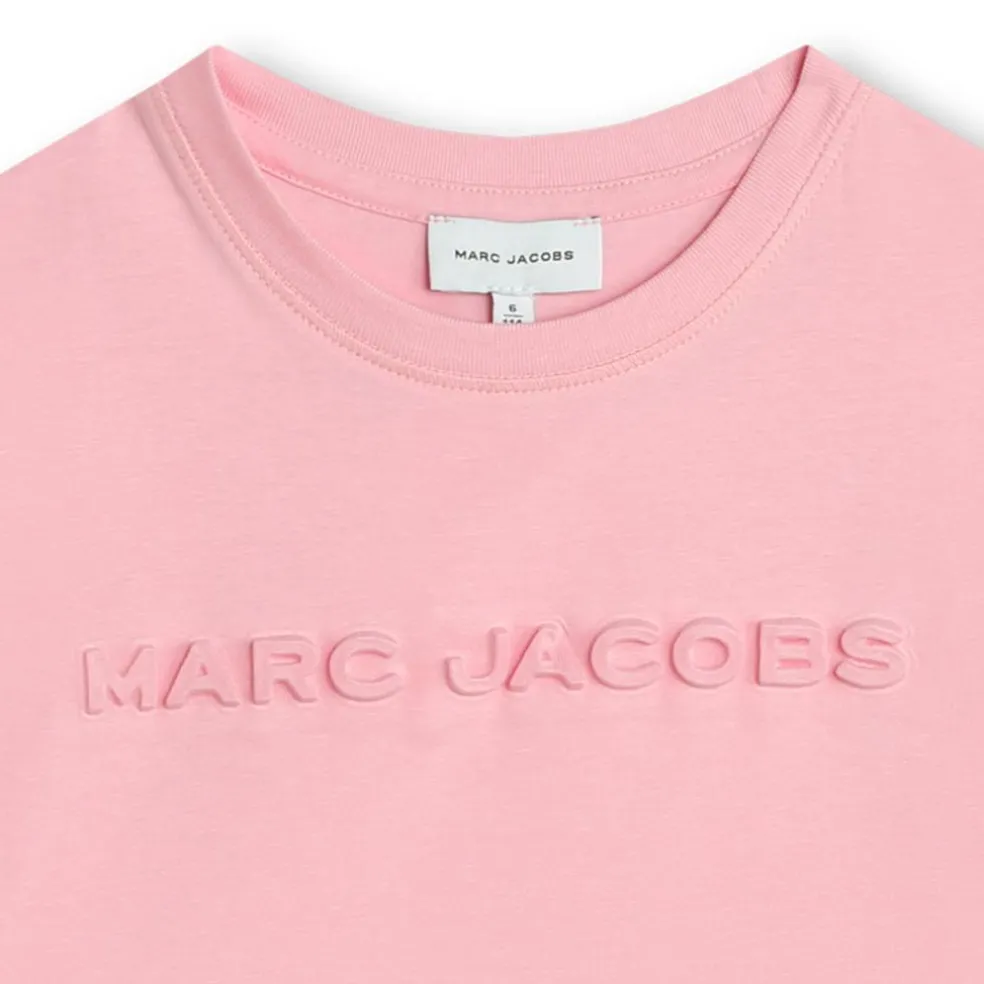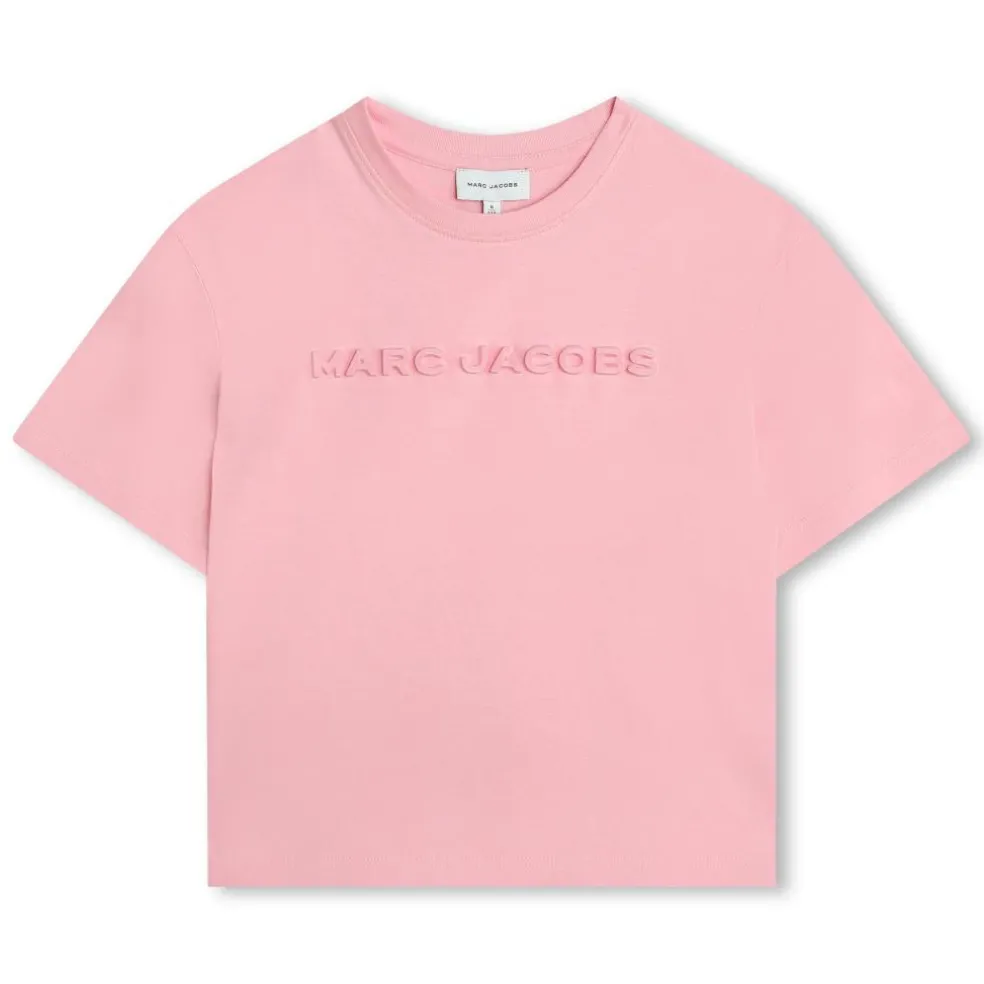 Short sleeved t shirt with a round neckline and embossed Marc Jacobs signature logo on the front.
