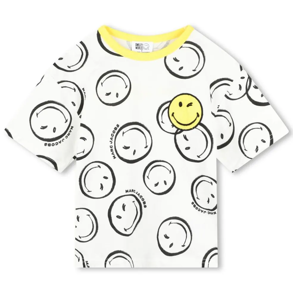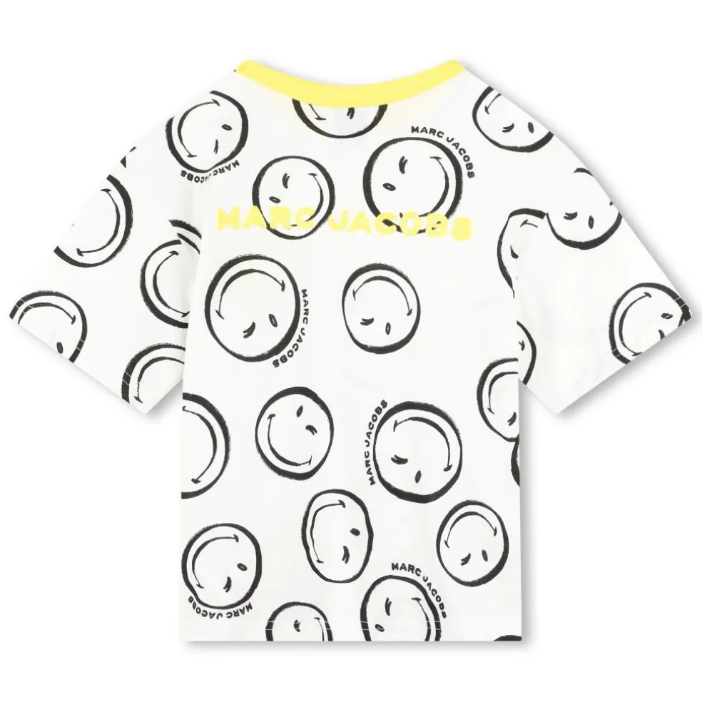 Organic cotton jersey tee-shirt in collaboration with “SmileyWorld”, with a contrasting yellow neckline and Marc Jacobs embroidered across the back.