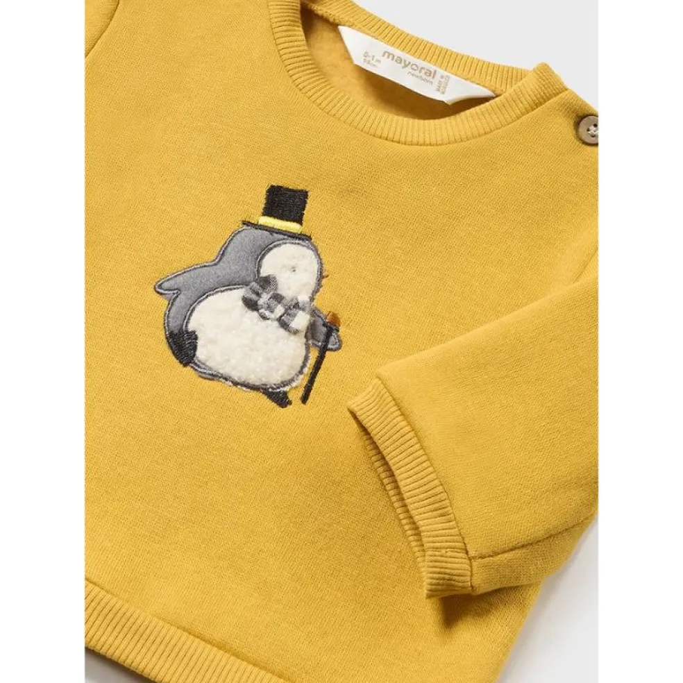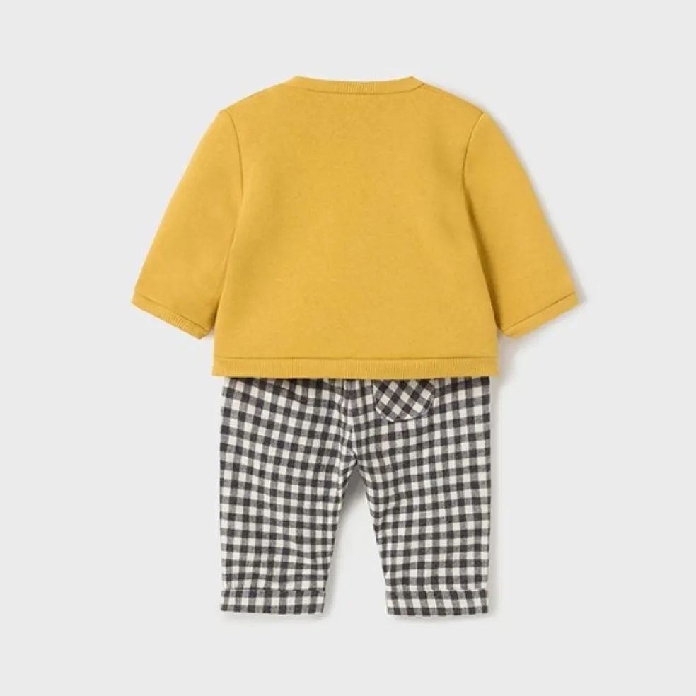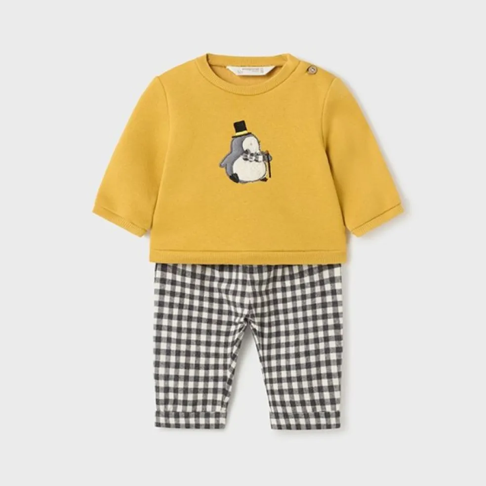 Long sleeved sweatshirt with a round neckline and appliqued penguin motif on the front, contrasting check trousers are fully lined and have an elasticated waistband.