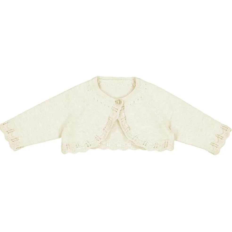 Cotton knit bolero style cardigan with scalloped edging and a single button fastening.