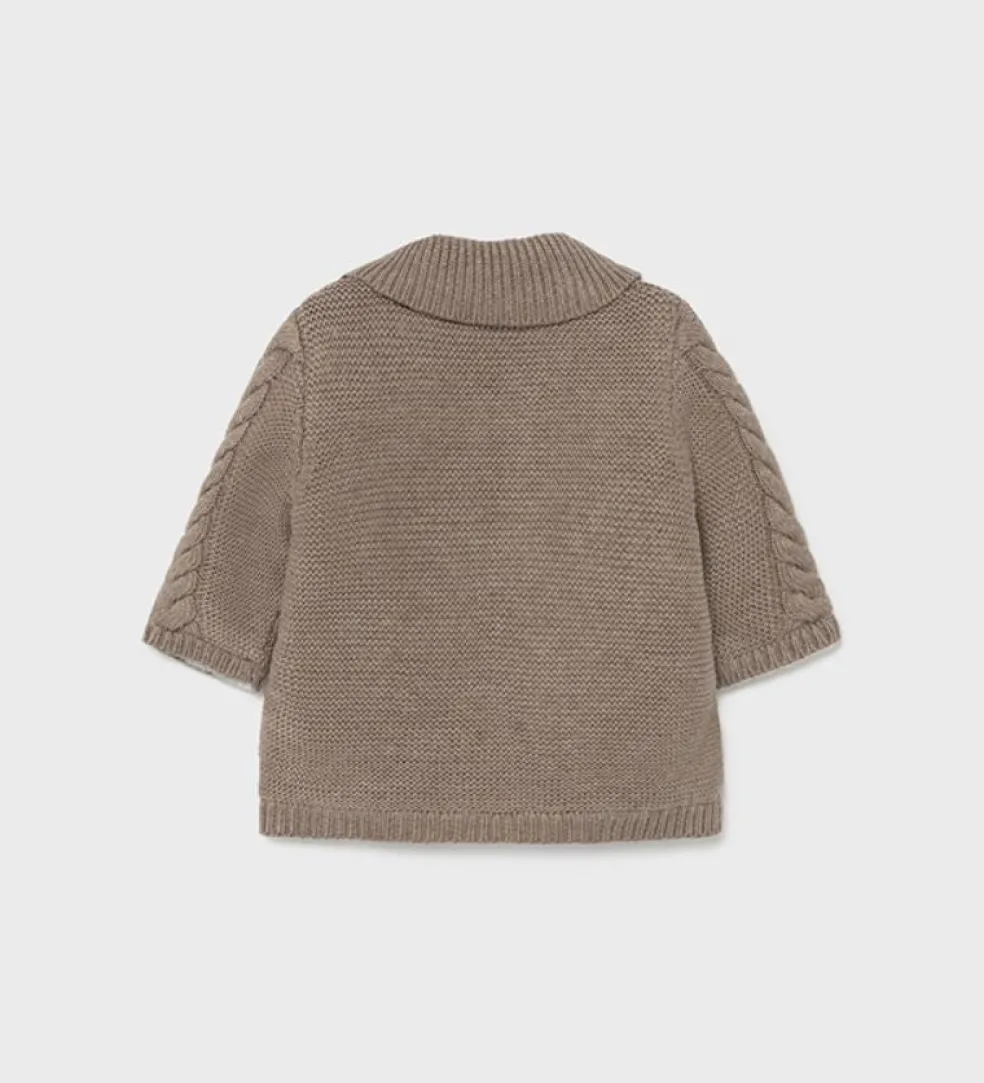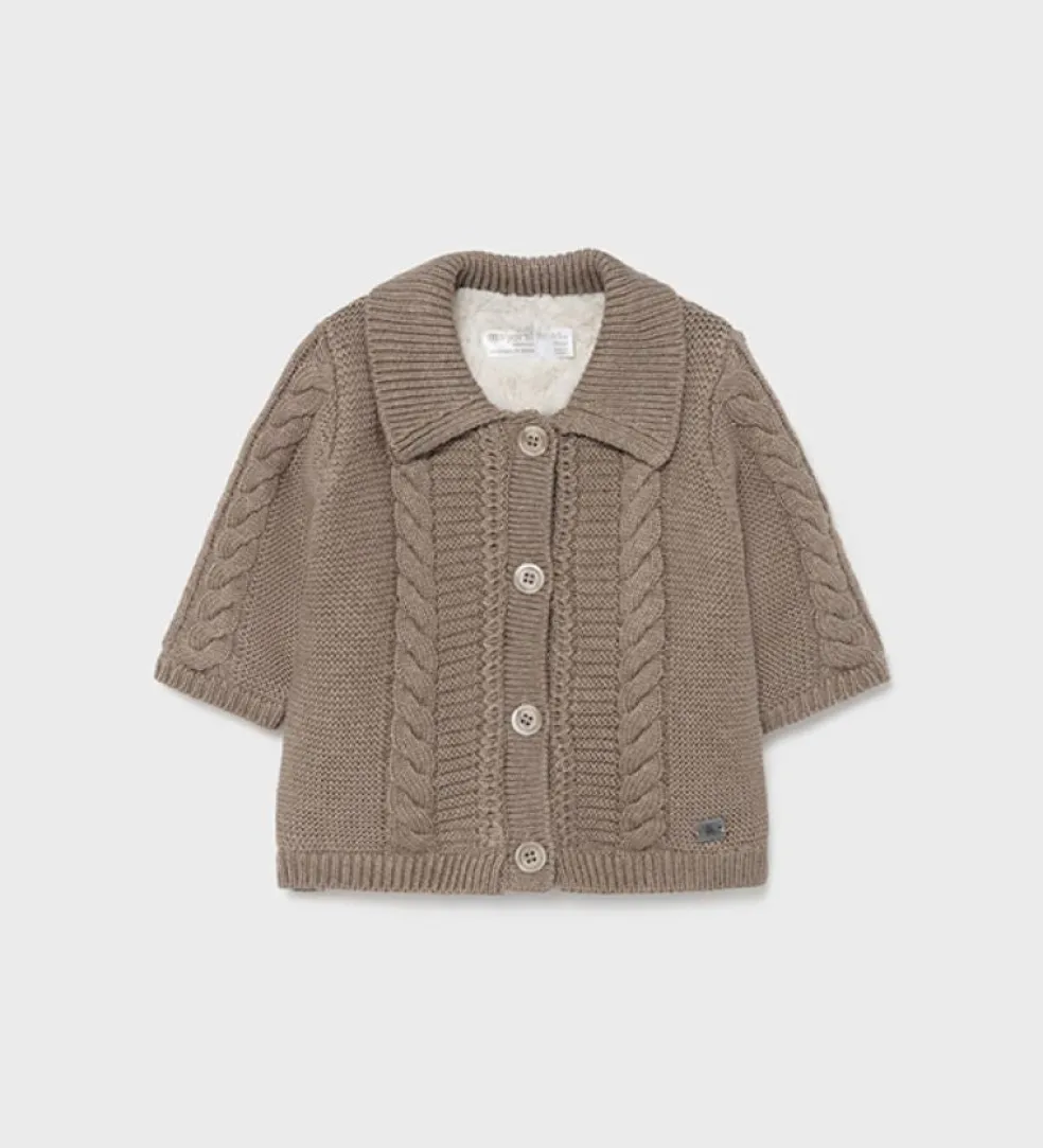 Long sleeved Woven knit jacket. Button fastenings down the front. Woolen Inner lining.