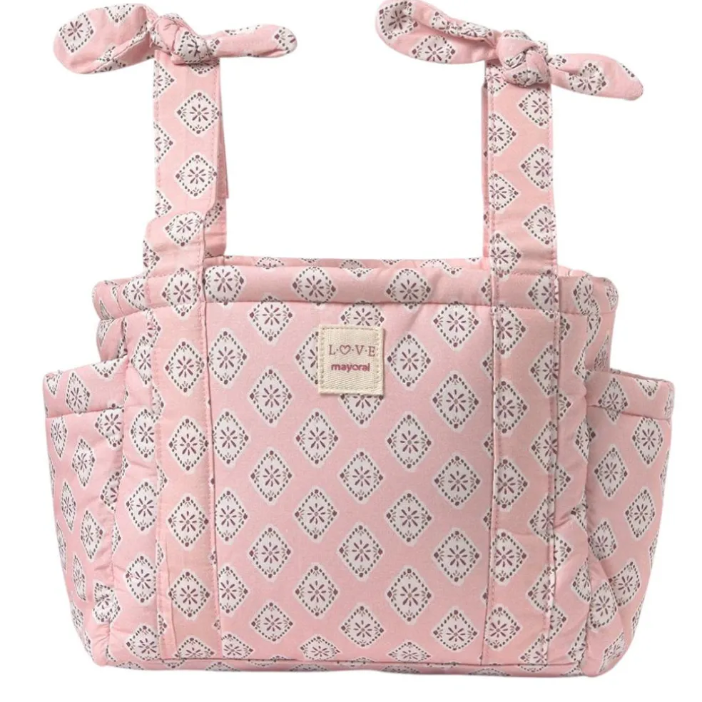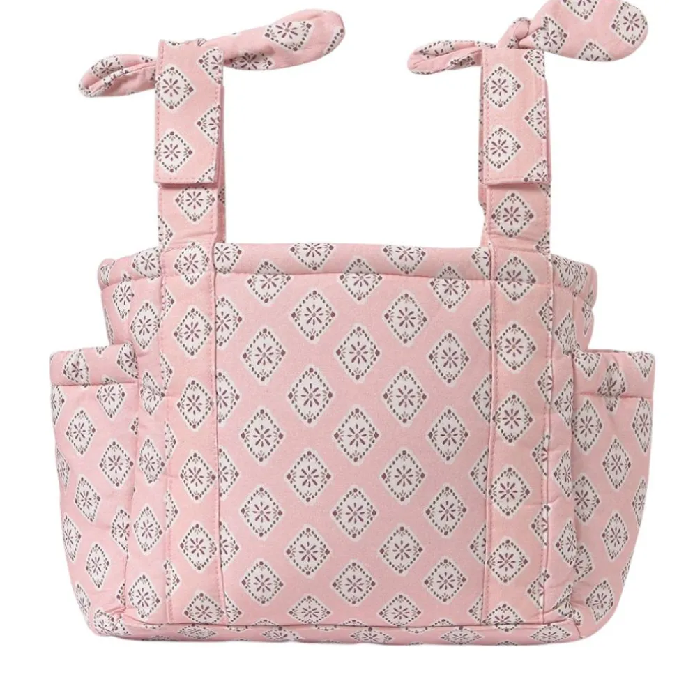 Pram bag for baby, perfect for stylishly carrying everything you need for a walk with your little one. Practical, waterproof outer material. Patterned design.