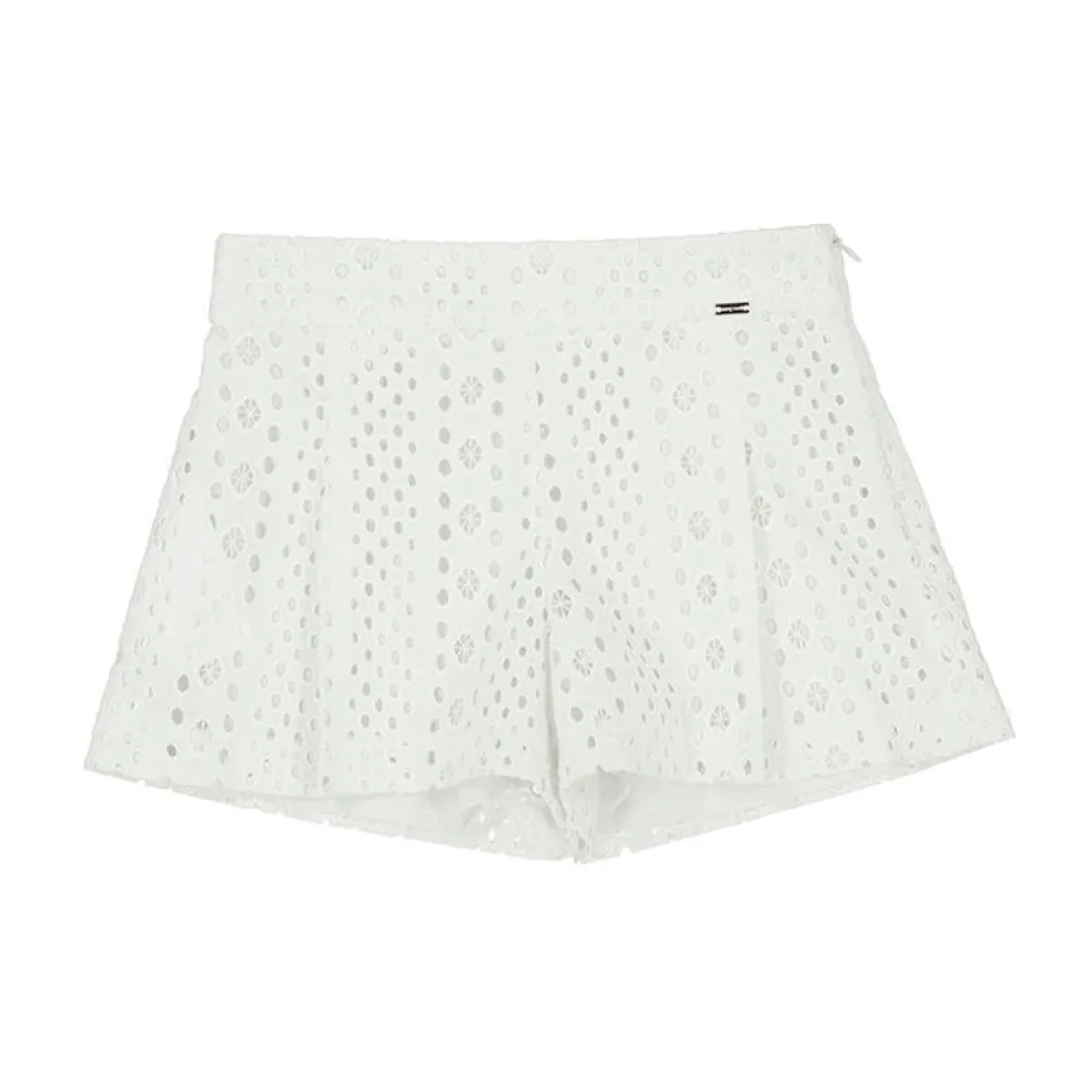 Fully lined broderie anglaise shorts with a side zip fastening and a fully adjustable waistband.
