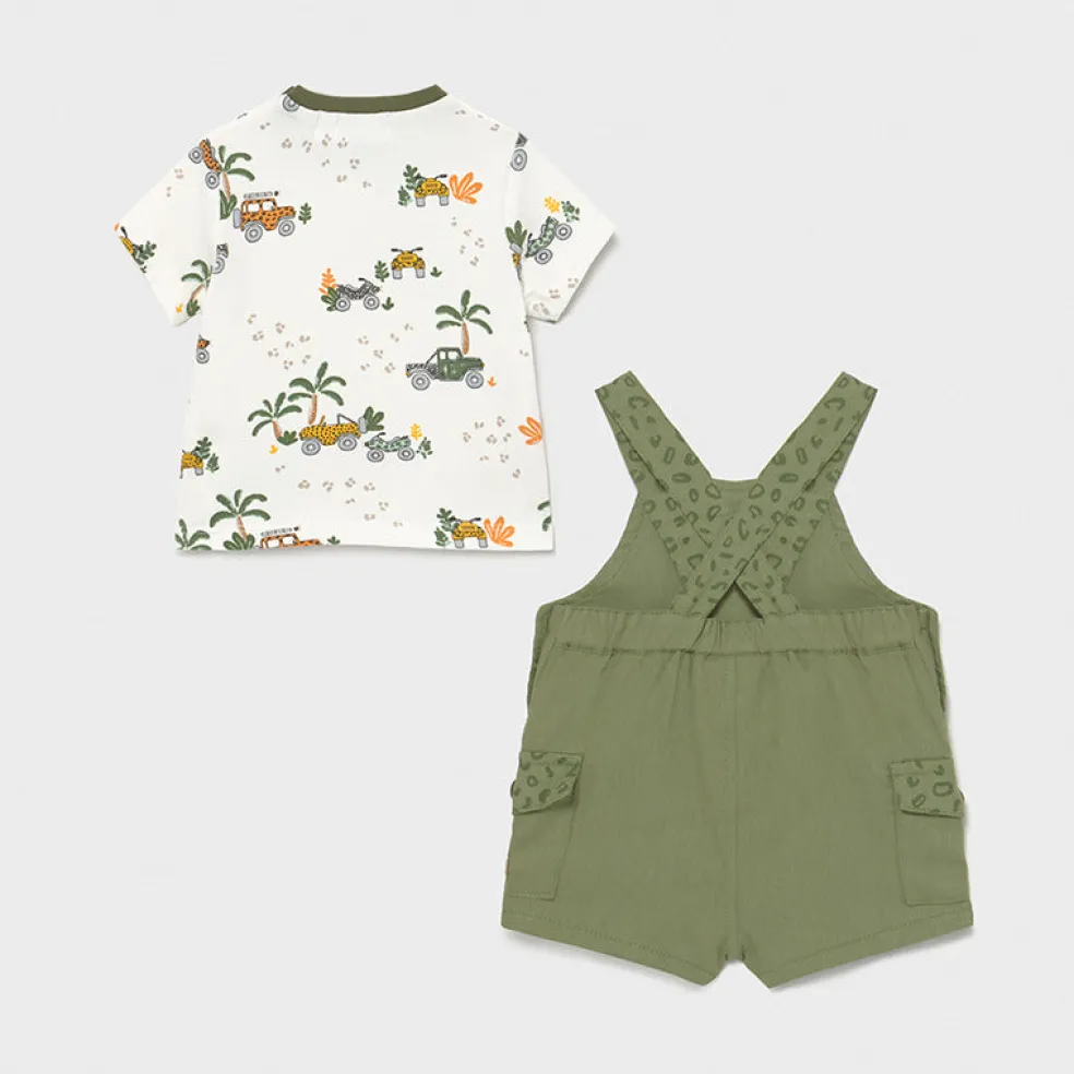 Short dungarees with matching short sleeved t shirt.