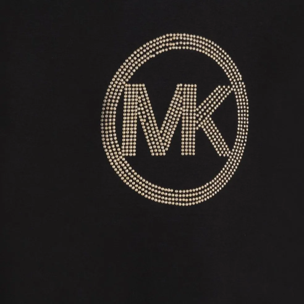 Hooded long sleeved jersey dress, with “MK” logo in rhinestoneson the front.