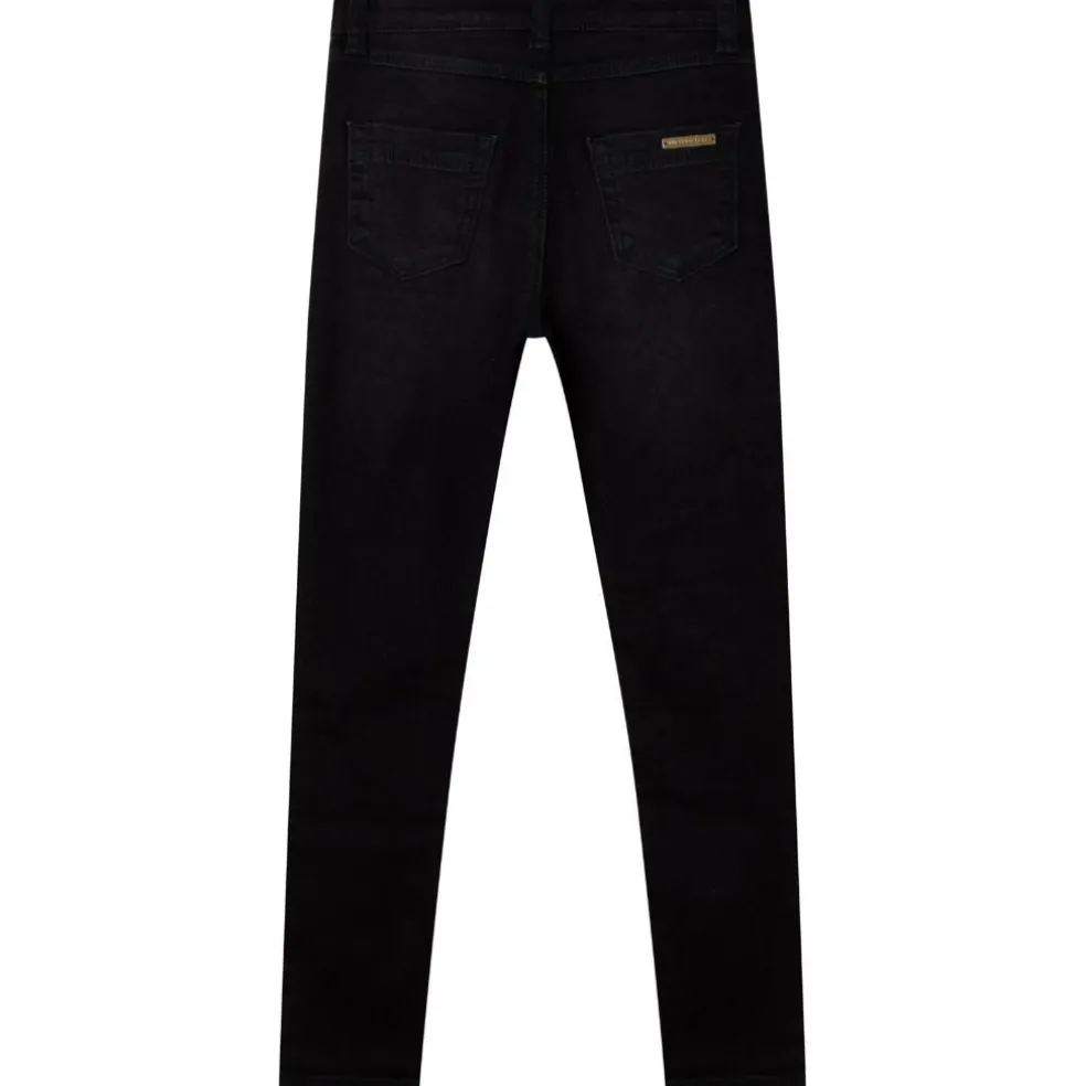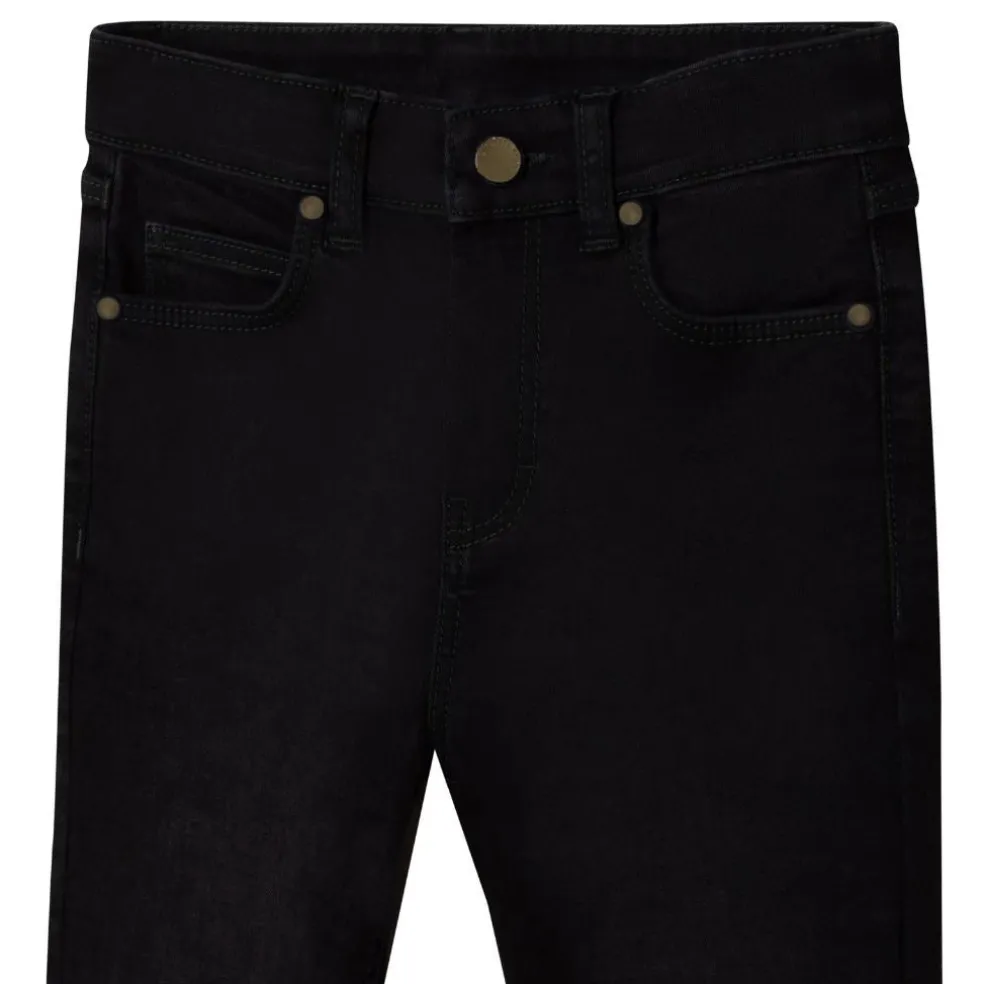 Slim fit 5 pocket black denim jeans, with “Michael Kors” plaque on back pocket.