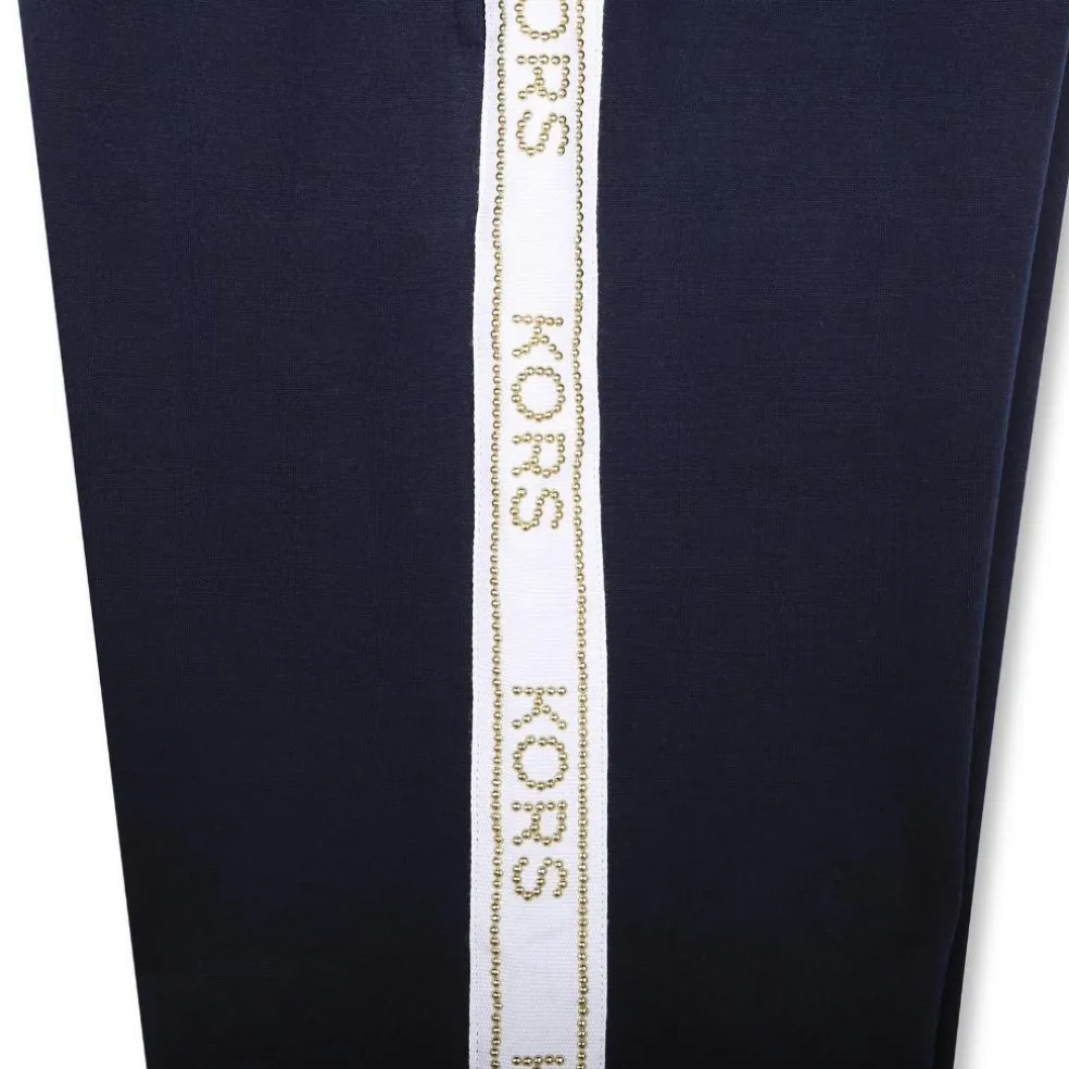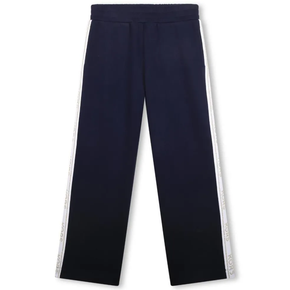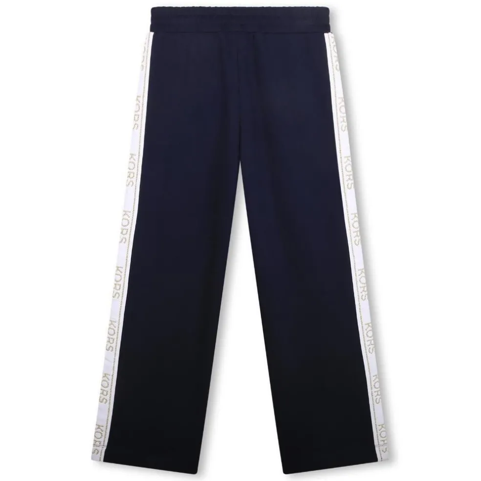 Jogging pants in puffy milano. Wide pants shape. Side stripes with “KORS” logo in gold studs. 2 pockets. Elastic waist with drawstring.