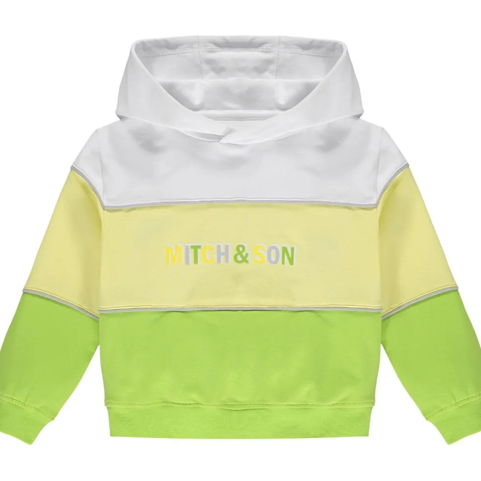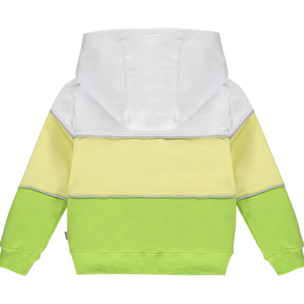 Cotton hooded colour block tracksuit with contrast piping and printed logo art work on top and trousers.