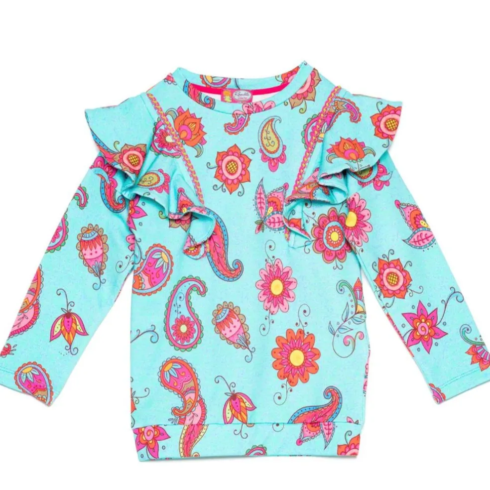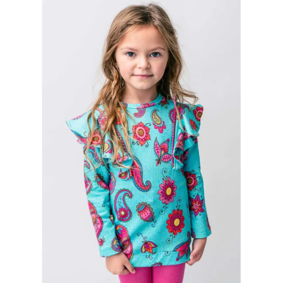 Long sleeved sweatshirt in an all over printed design with ruffle shoulders.
